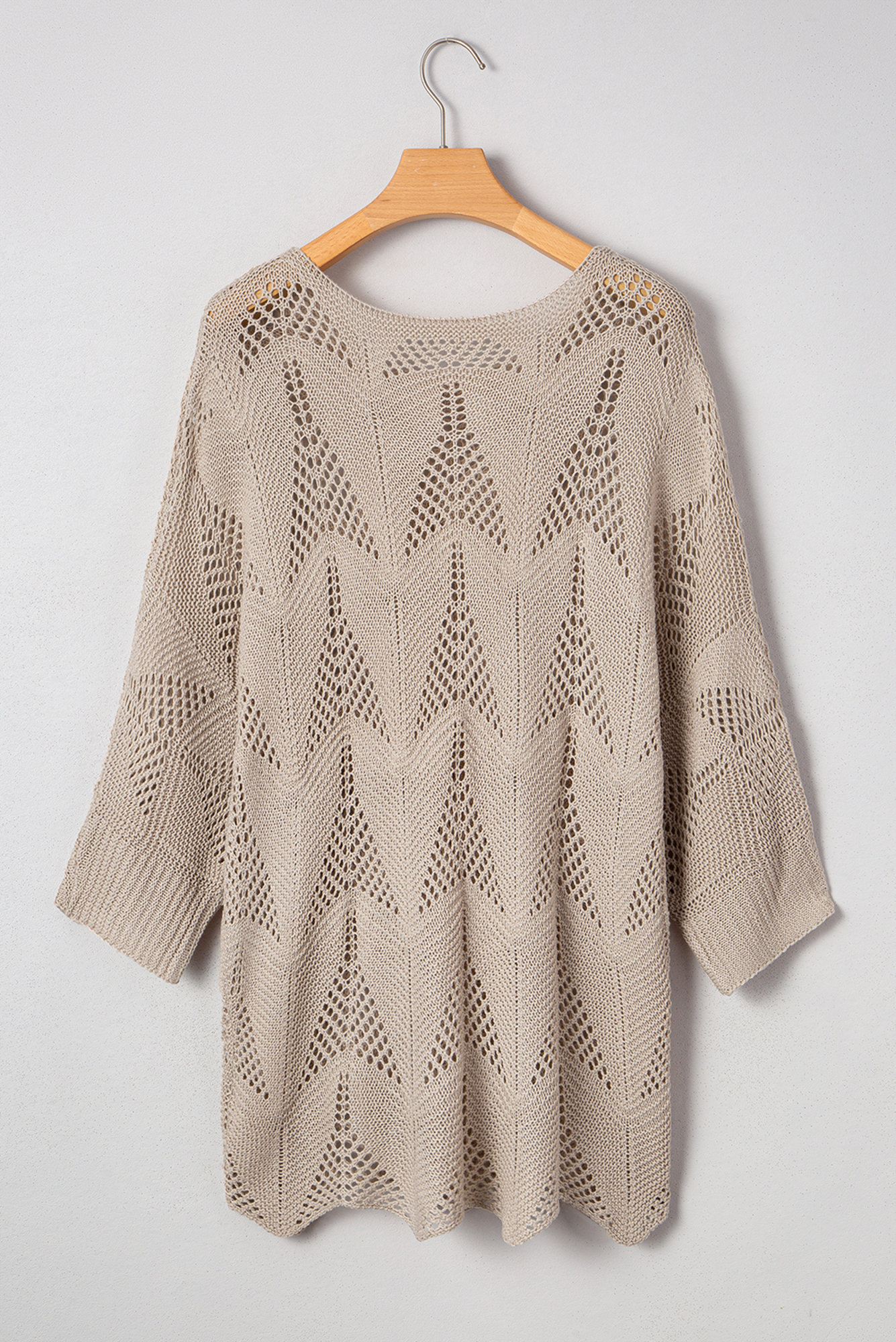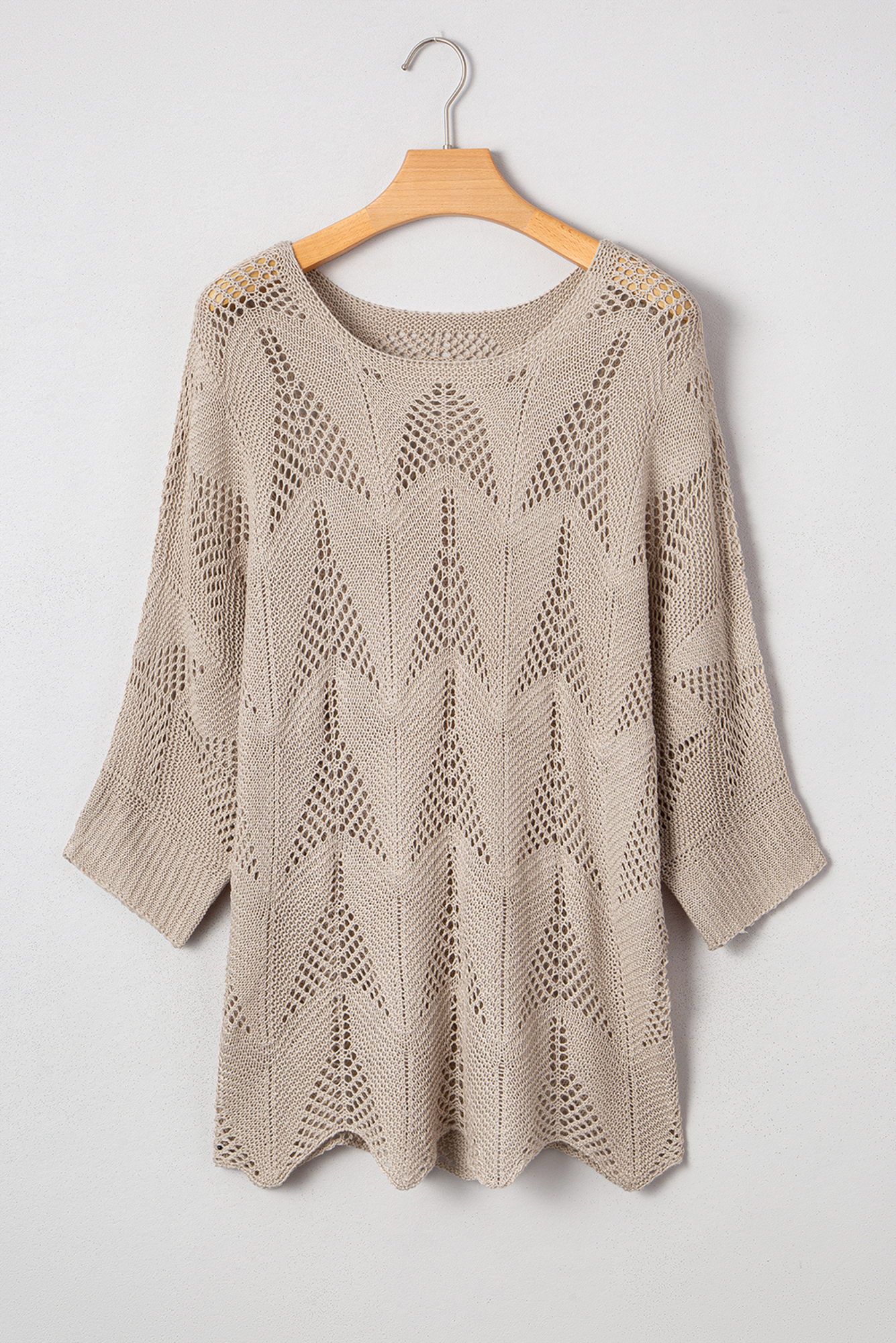 Meet Ava 8 Sleeve Casual Sweater—effortless, flattering, and easy to style for everyday life. Hollow out knit design adds a breezy, stylish touch for fall days. Unique 7/8 sleeves create a trendy, casual silhouette for women. Soft lightweight fabric keeps you comfy all season long. Easy to layer over tanks or bralettes for a chic look. Cheap stylish sweaters for with fine quality. Material: 100%Acrylic.