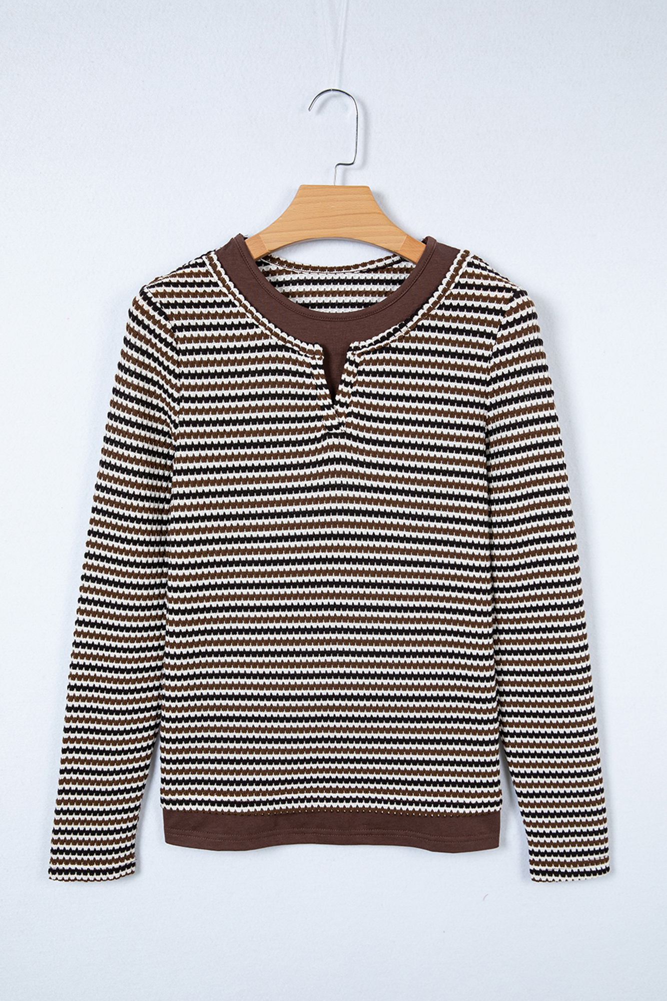 Avani Sleeve T Shirt Long Sleeve Top is designed to move with you and keep you comfortable all day long. Faux two-piece design gives this textured striped top a trendy layered look. Soft long sleeve T-shirt provides cozy comfort for daily wear. Round neck style offers a clean, versatile silhouette for any outfit. A stylish long sleeve top perfect for casual days, travel, or layering. Material: 97%Polyester+3%Elastane.