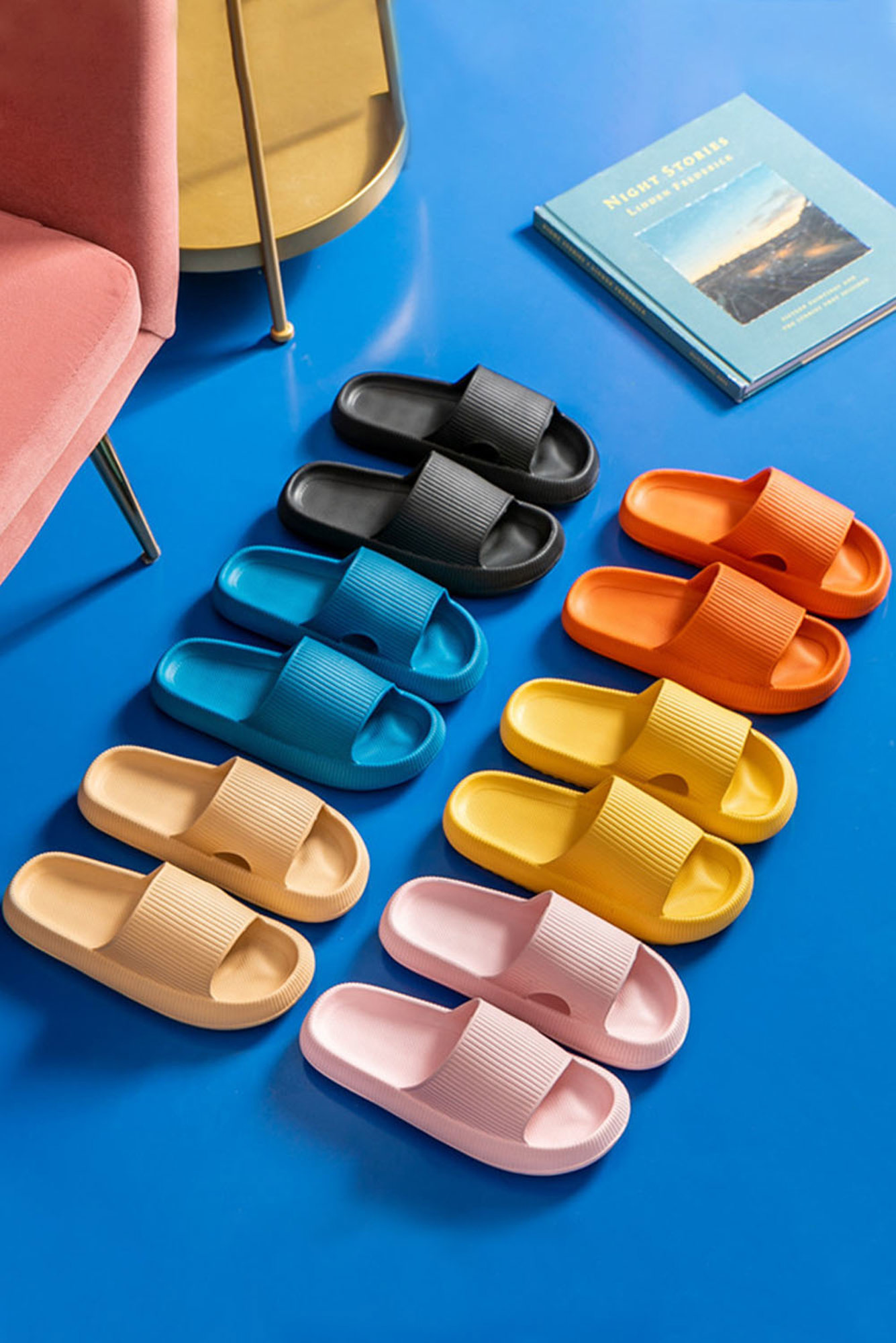 Step into Azaria Soled Slip On Slippers for an effortless look that feels as good as it looks. Hollow-out slippers make wearers toes to breathe freely Textured pattern provides delicate look and have anti slip effect The thick sole provides cushioning for wearer's feet Slip-on design makes it easy to put on and take off slippers are available in several colors to suit any style Material: 100%PVC.