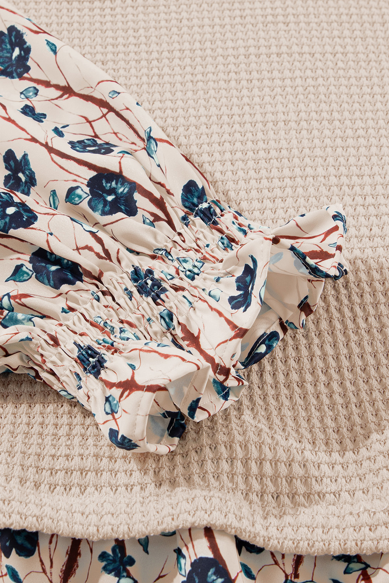 Meet Beige Faux Two Piece Knit Patchwork Floral Print Plus Size Top—effortless, flattering, and easy to style for everyday life. This 2-in-1 top is a stylish option for a variety of occasions. The delicate floral print makes it perfect for special events or casual outings. Knit patchwork details create a unique and fashionable look. Flounce sleeves are perfect for adding a romantic flair to your outfit. plus size tops ensure a comfortable wear. Material: 70%Polyester+27%Viscose+3%Elastane.