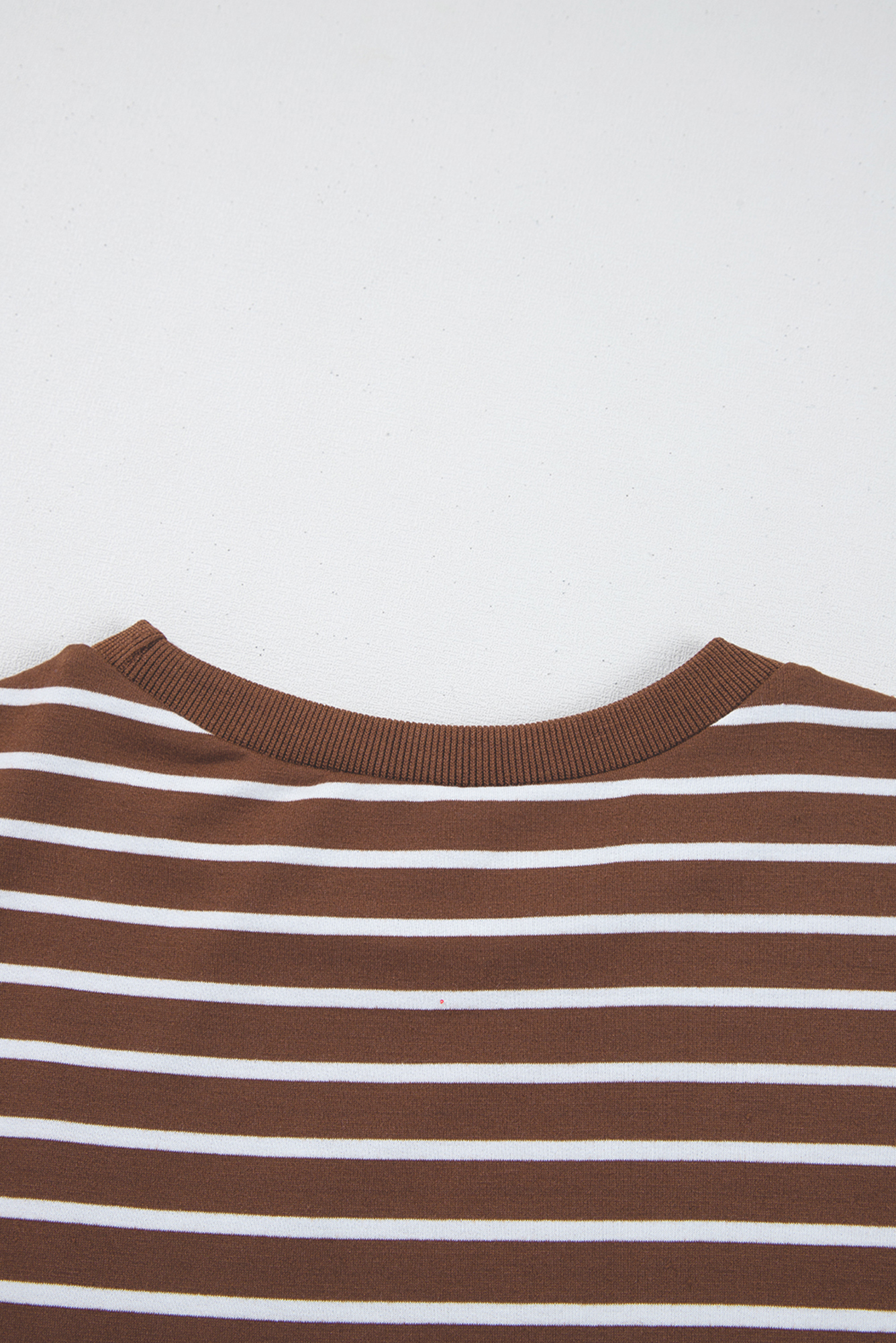 Meet Blakely Sleeve Loose top Long Sleeve Top—effortless, flattering, and easy to style for everyday life. Effortlessly stylish in this striped long sleeve top. It’s a loose pullover for women of all ages range. Features ribbed details at cuffs and neckline. Casual loose style designed with dropped shoulders. long sleeve tops for casual outings or lounging at home. Material: 100%Polyester.