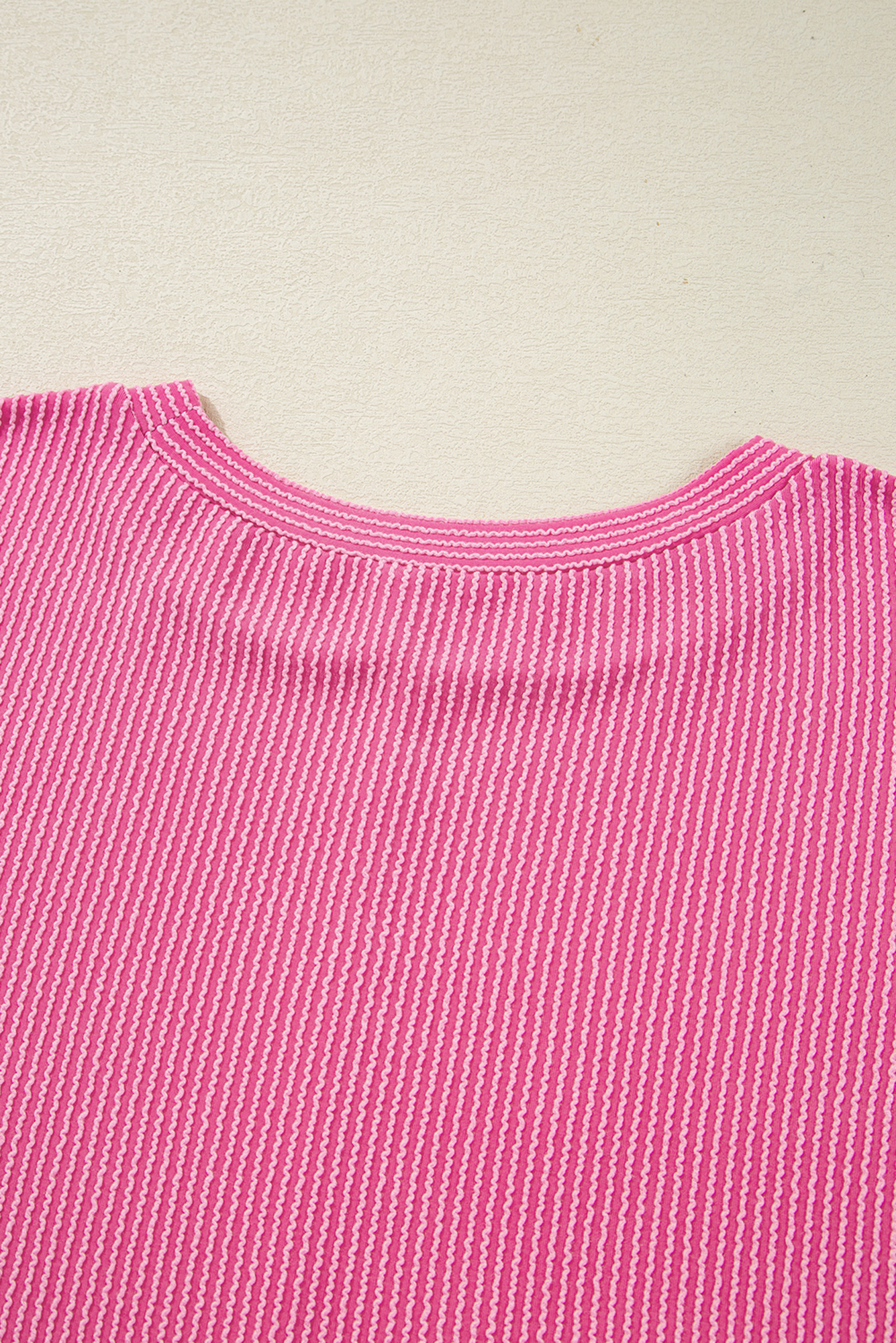 Bonbon Spiral Ribbed Exposed Seam Detail Plus Size Long Sleeve Top
