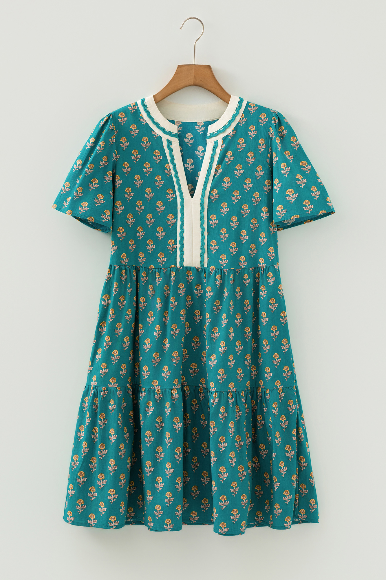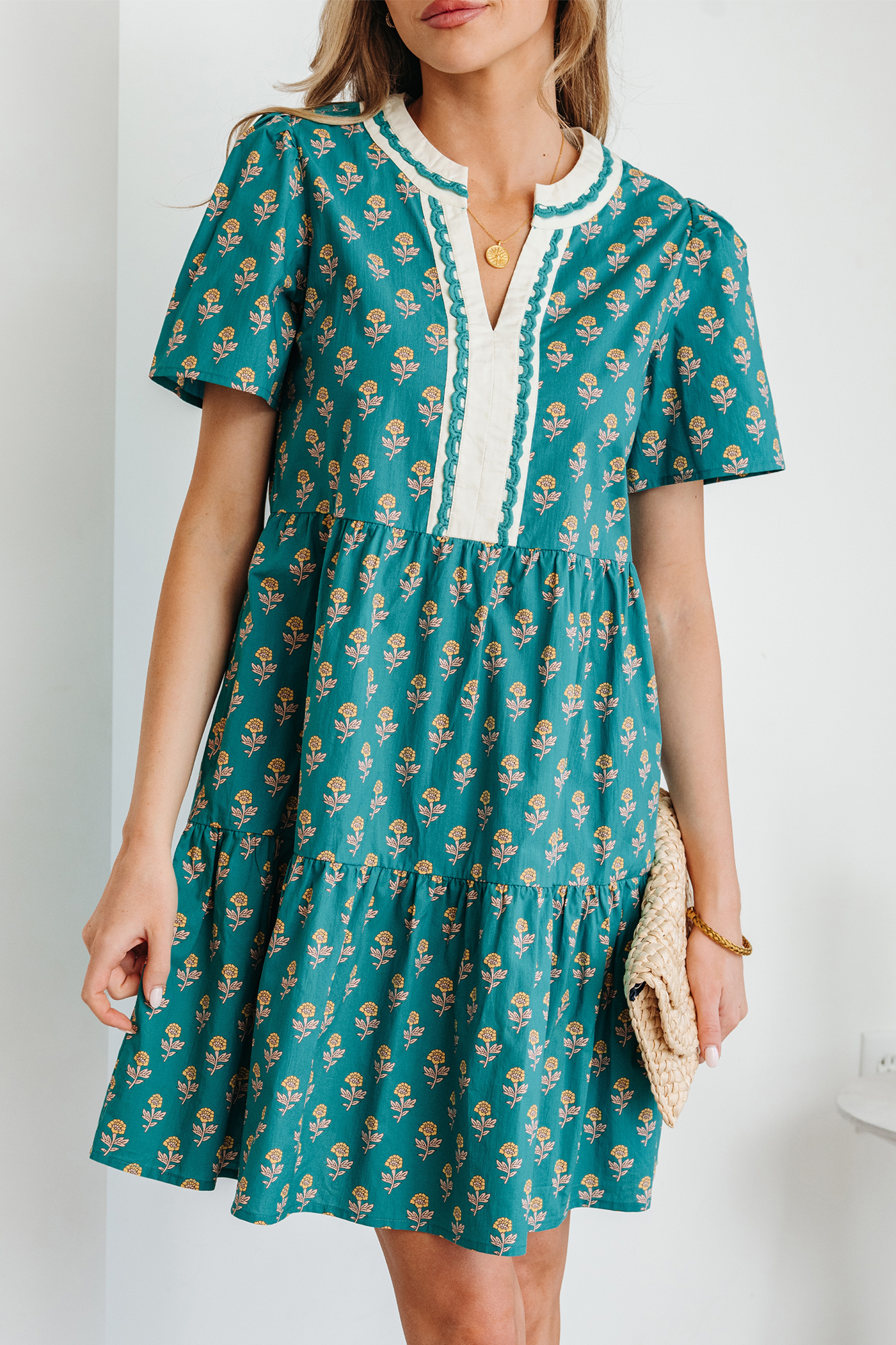 Slip into Clover Short Sleeve Floral Dress—soft, easy, and perfect for busy days on the go. The floral print brings a fresh, feminine touch to everyday styling. V-neckline with contrast trim adds a polished, eye-catching detail. Short sleeves offer breathable comfort for warm-weather wear. Lightweight fabric creates easy movement and all-day comfort. Material: 100%Cotton.