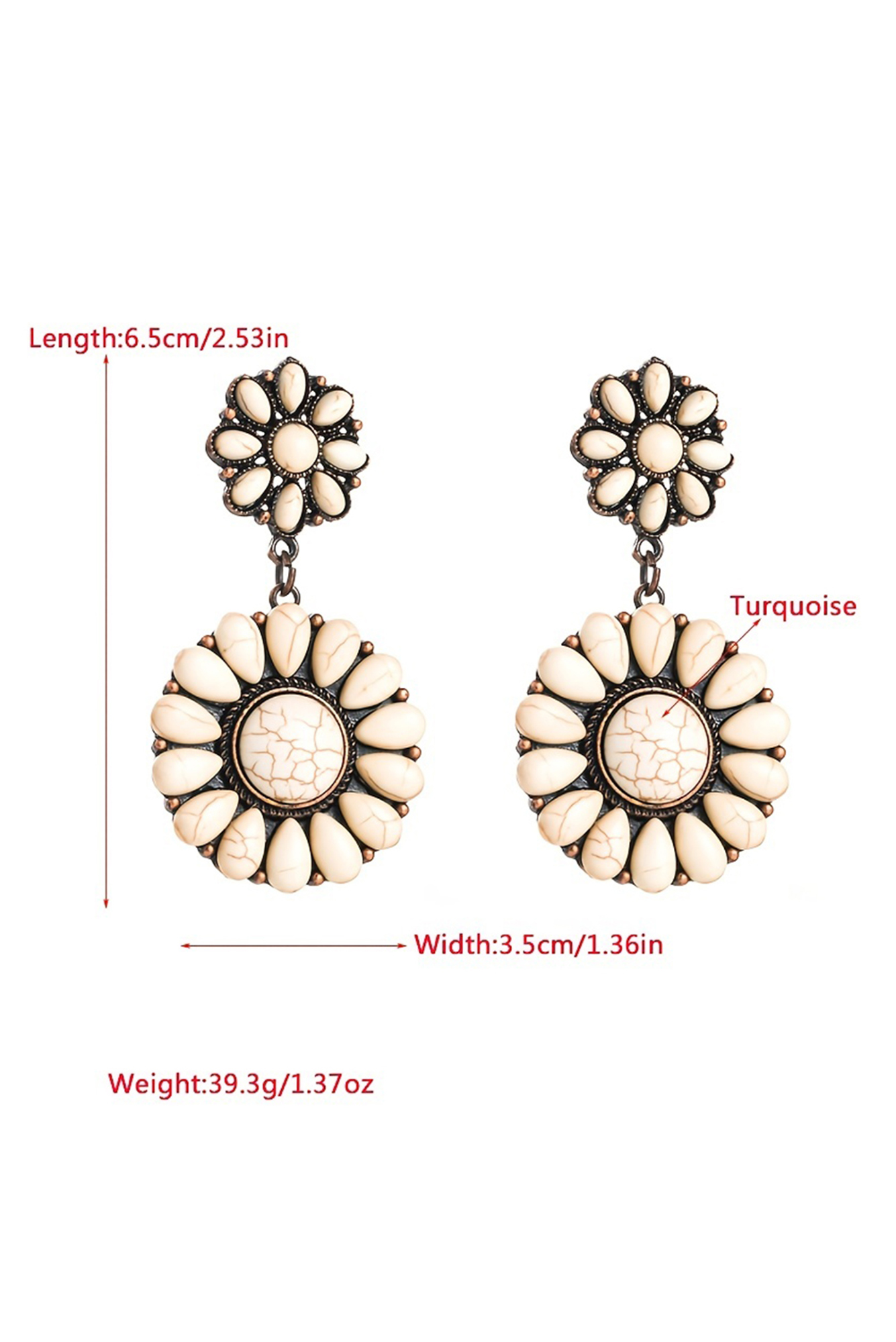 Meet Daniela Flower Shape Stud Earrings—effortless, flattering, and easy to style for everyday life. Unique Western-inspired design with turquoise inlay. Delicate flower shape for a feminine touch. Stud style for comfortable and secure wearing. Made of high quality alloy material for long lasting use jewelry adds a pop of color to any outfit. Material: 100%Glass Bead.