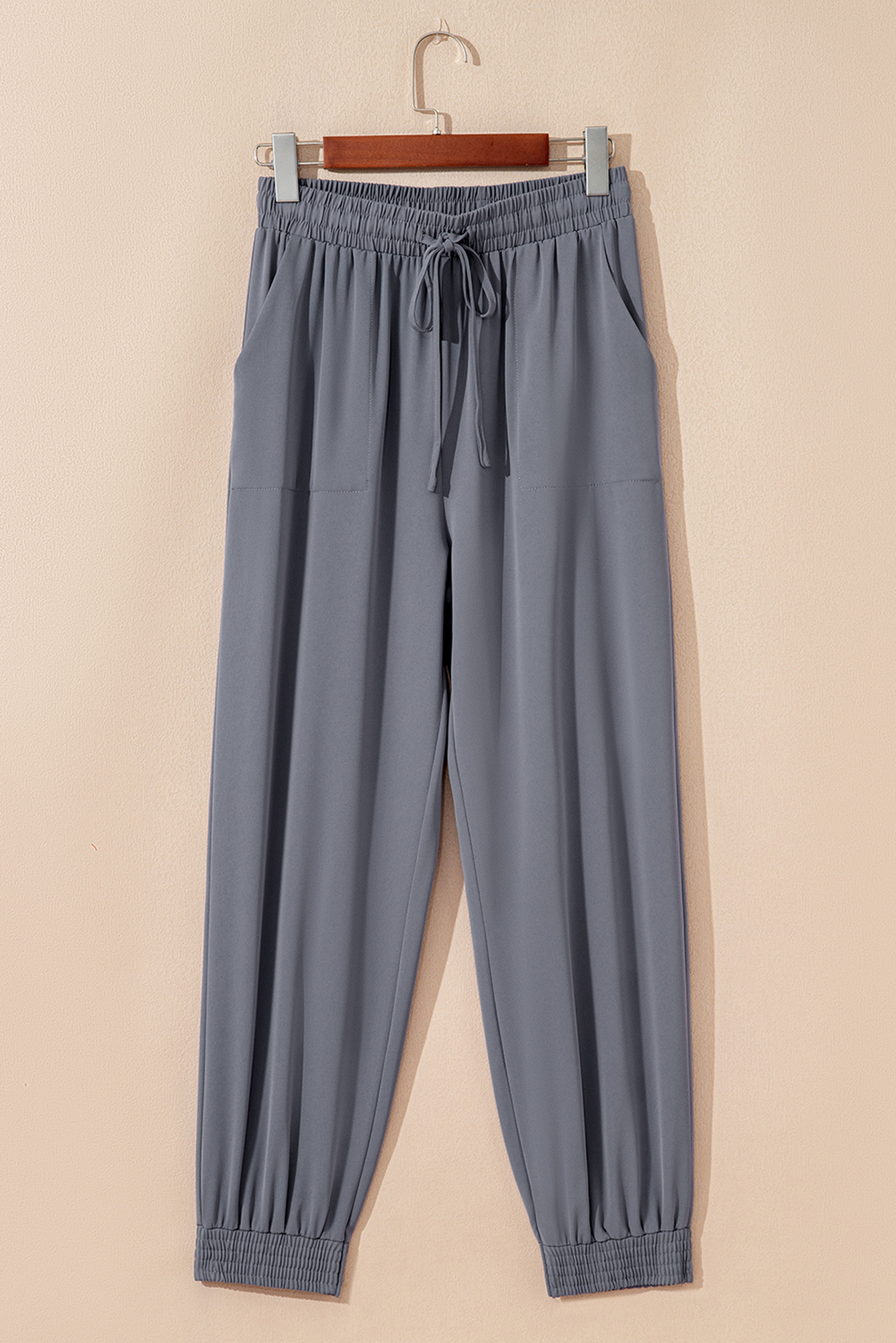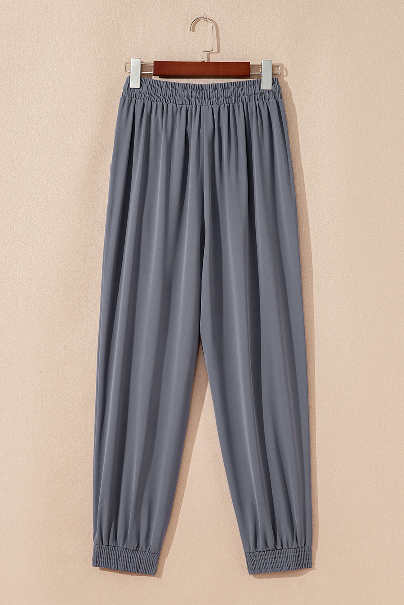 Dress in Elani Waistband Cropped Jogger Pants when you want a relaxed fit that still feels polished. These jogger pants are stylish with a cropped length The smocked waist with drawstring is elastic and flexible Casual joggers with functional pockets on both sides These women’s pants are versatile for different body shapes ladies trousers include different chic styles Material: 100%Polyester.