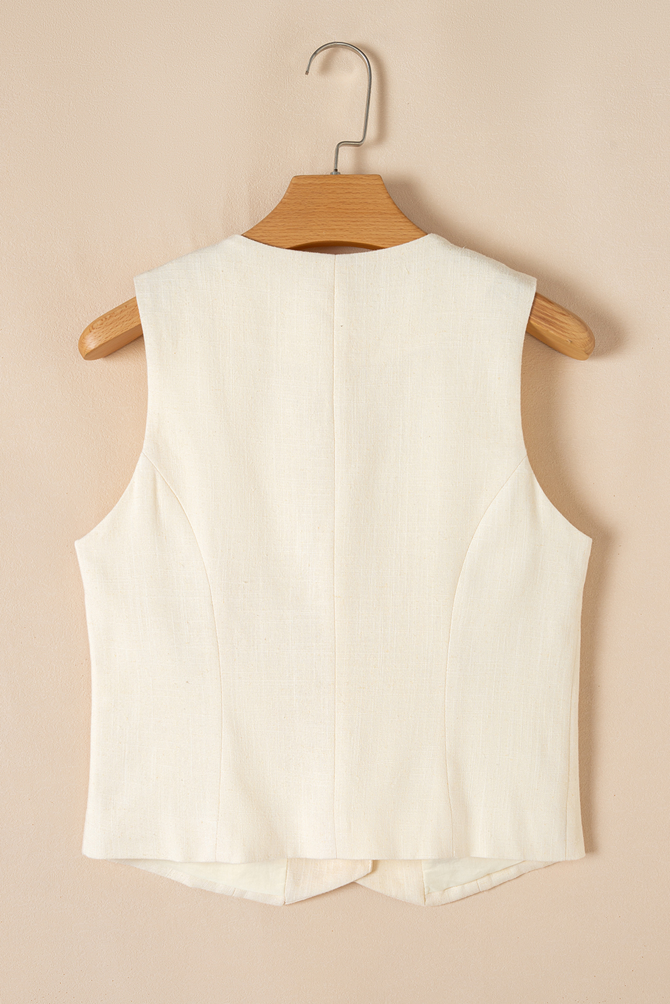 Meet Eleanor Slim Fit Vest—effortless, flattering, and easy to style for everyday life. The vest is a sleek and versatile addition to any wardrobe. The V neck design flatters the collarbone and adds a touch of elegance. Buttoned front offers a classic look, making it suitable for various occasions. Pair with a collared shirt and straight pant for a professional outfit. vests are perfect for layering over shirts or dresses. Material: 80%Viscose+20%Linen.