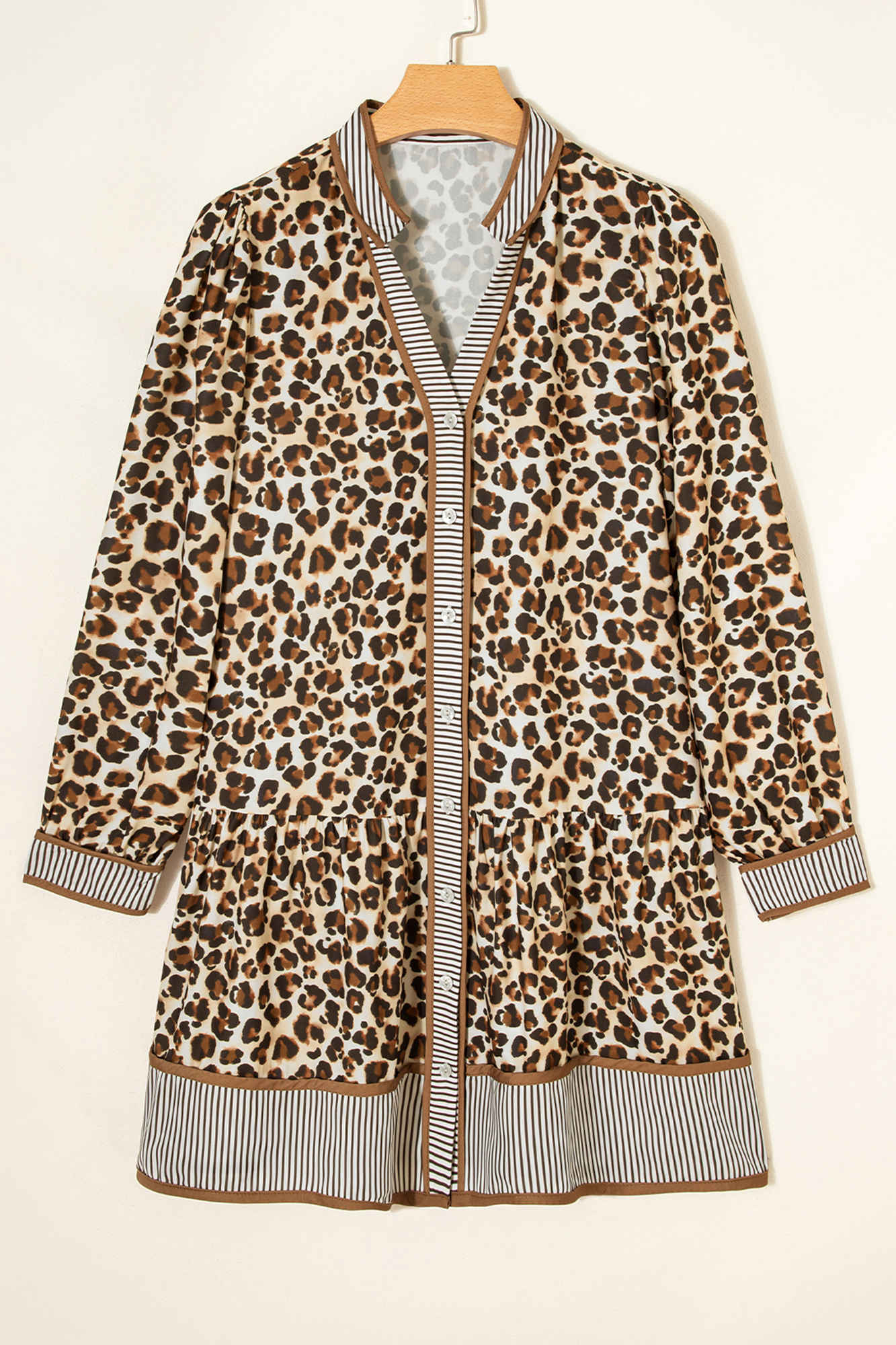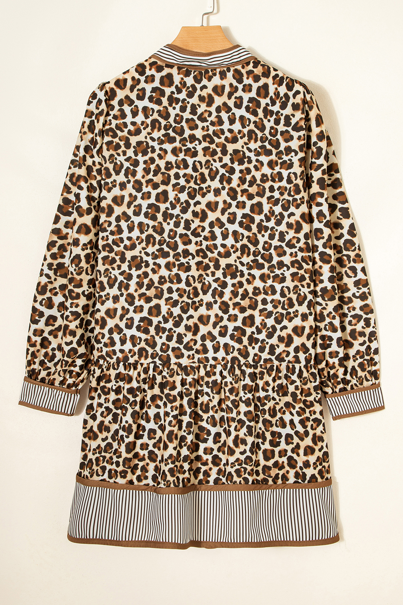 Stay comfy and put-together all at once in Ellianna Sleeve Loose Mini Dress. Trendy leopard and striped patchwork mini dress with a relaxed fit. 3/4 sleeves offer comfort and easy movement for daily wear. Loose silhouette flatters all body types with effortless charm. Perfect casual mini dress for work, brunch, or weekend outings. Material: 100%Polyester.