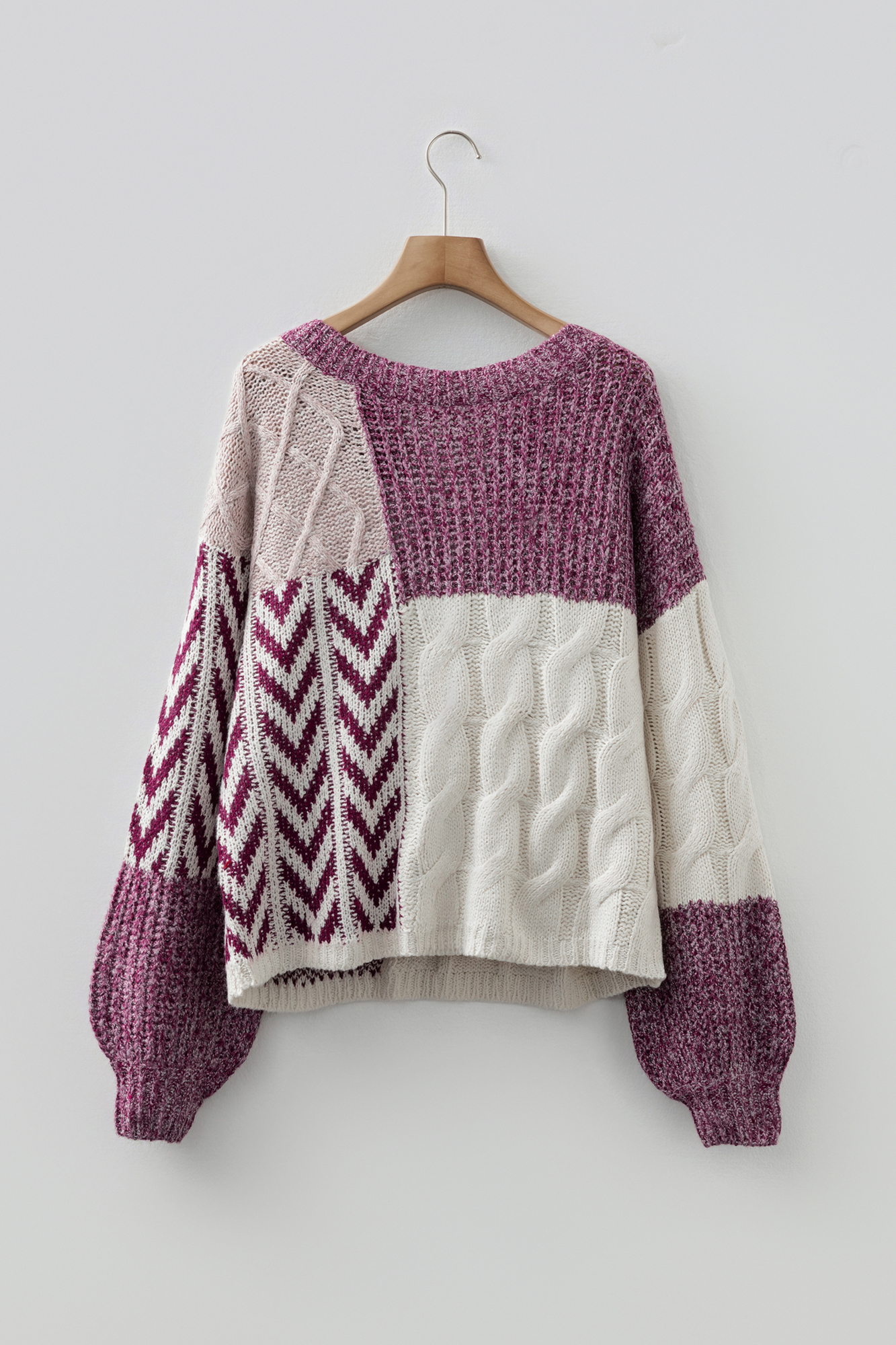 Elliott Back Loose Fit Sweater is made for real life—easy to wear, easy to love. This patchwork sweater turns heads with bold contrast panels. Knotted back detail adds a flirty twist. This textured knit sweater looks casual with a bit slouchy. Chunky sweater for women to keep stylish and warm. Material: 100%Polyester.