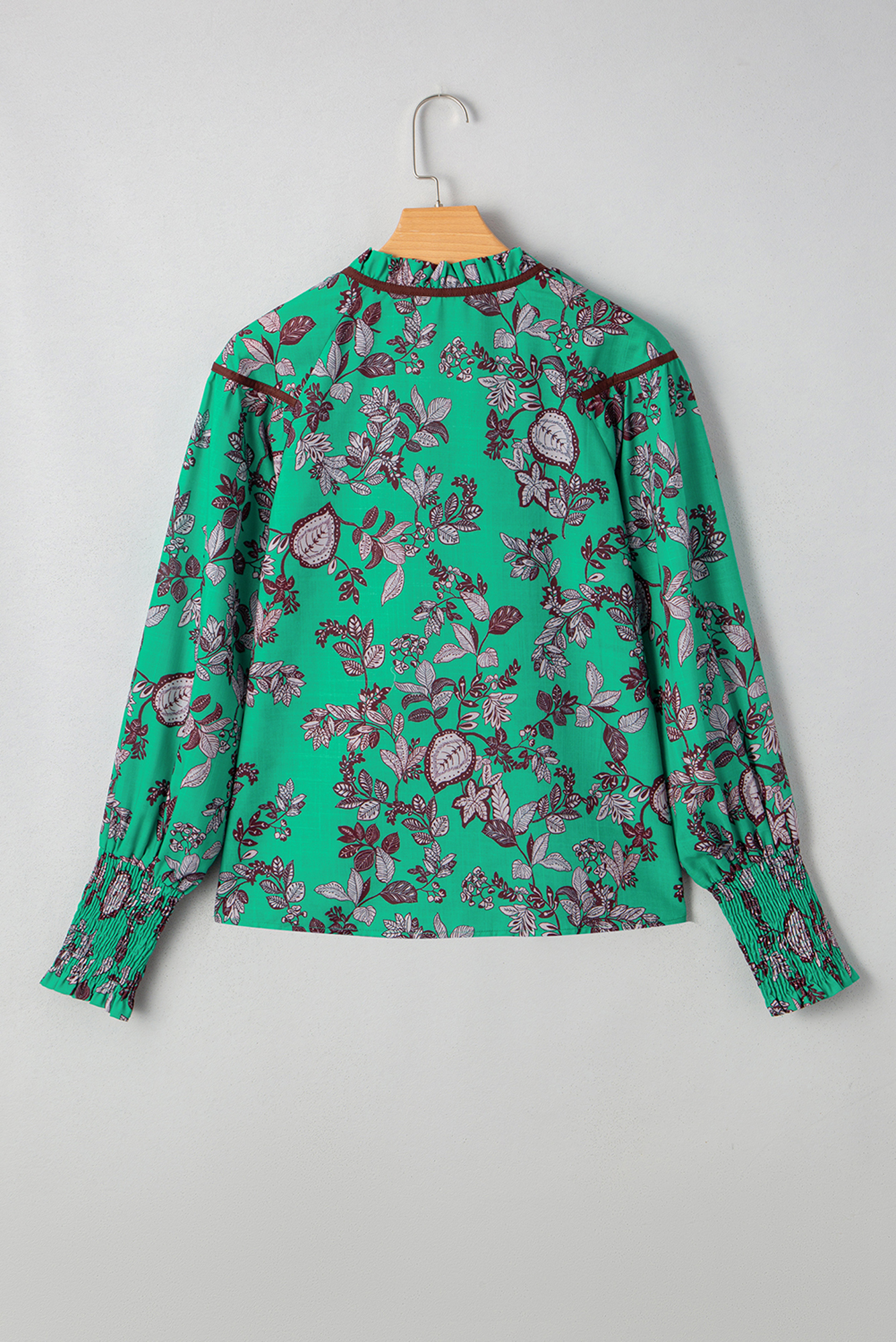 Make Elouise Shirred Puff Sleeve Blouse your grab-and-go choice for effortless, everyday dressing. Leaves print adds a fresh, nature-inspired touch to your outfit. Contrast trim V neck enhances the neckline with chic detail. Shirred puff sleeves create volume and feminine charm. This relaxed fit blouse is suitable for different body shapes. Womens blouses from Dear-Lover with chic styles and competitive prices. Material: 100%Polyester.