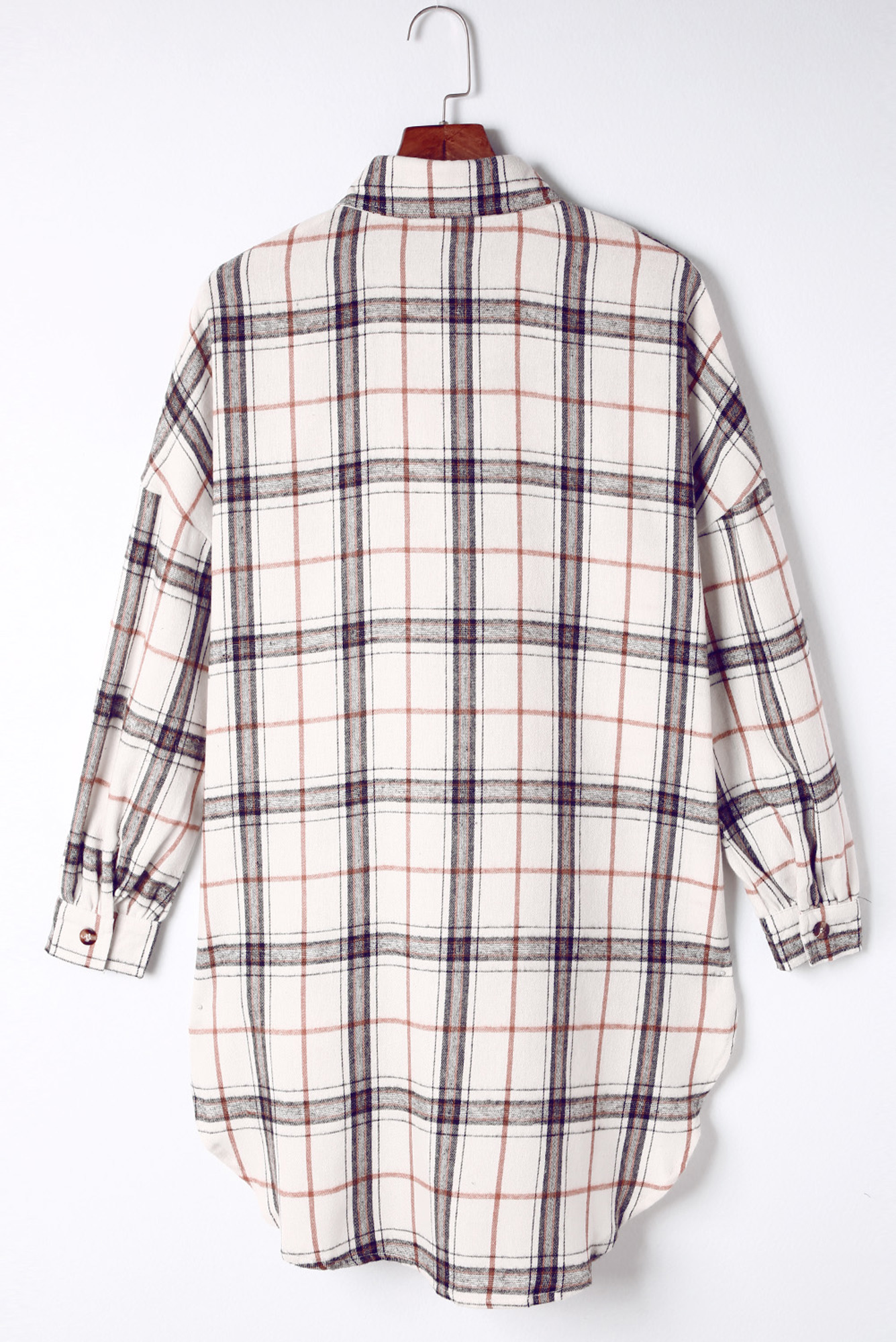 Meet Emily Oversized Plaid Pattern Plus Shacket—effortless, flattering, and easy to style for everyday life. Cozy and faddish, this shacket is going to be an all season go to This is a great lightweight layering option to elevate your OOTD Featuring a collared buttons front, full-length sleeve with a button cuff, one front patch pocket A hi-lo slit hem, and the plaid complete the western silhouette of this shacket Women's plaid shackets are roomy fit for layering, the latest styles for boutiques Material: 95%Polyester+5%Elastane.