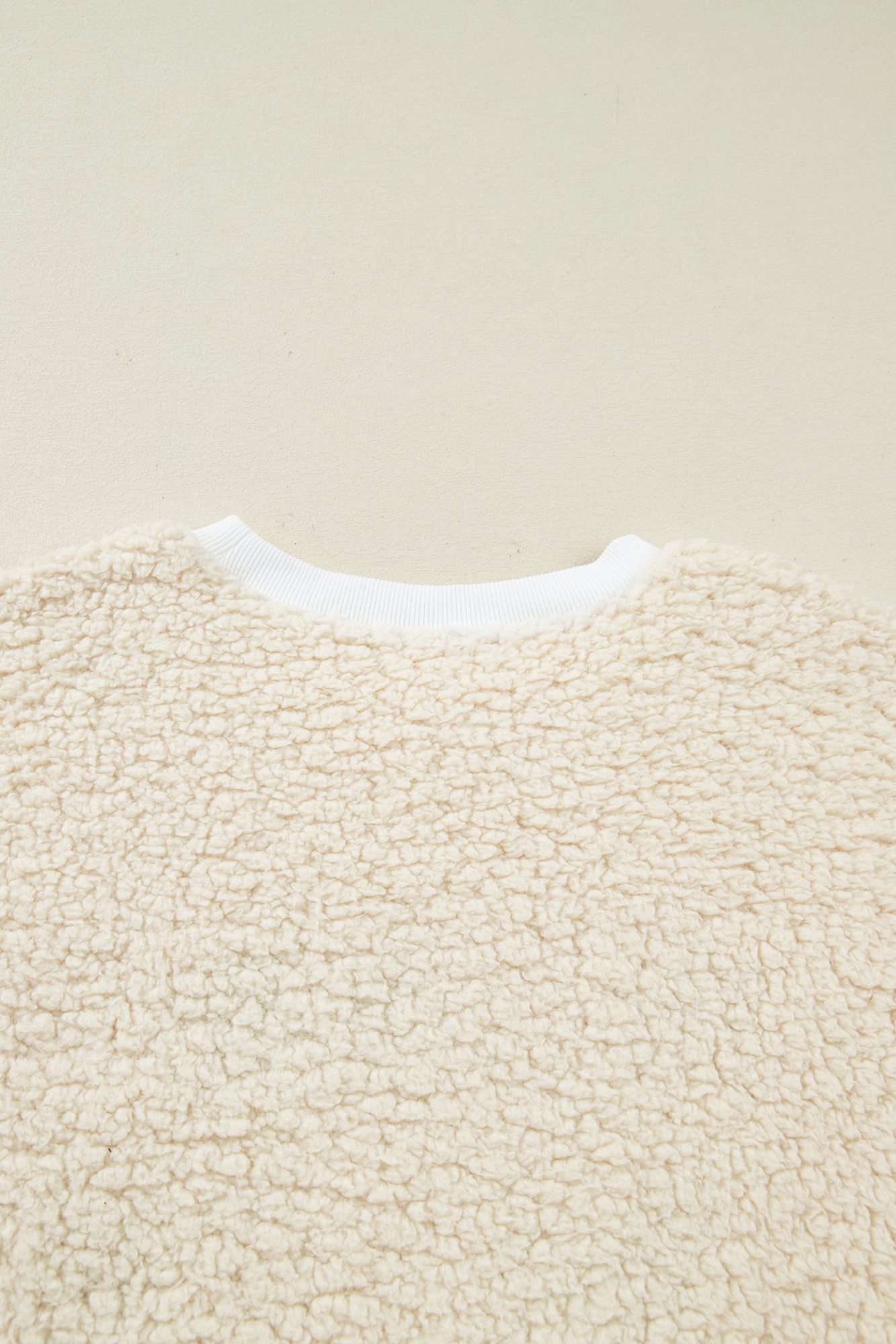 Ensley Christmas Embroidered Sherpa Pullover brings you easy comfort with just the right touch of everyday style. The multicolor MERRY CHRISTMAS embroidered graphic gives a festive vibe. The sherpa fabric made is very soft, warm and comfy for cold weather. This sherpa sweatshirt is relaxed fit to enhance a slim look. Nice to match with leggings, jeans and sweatpants for women. Material: 100%Polyester.
