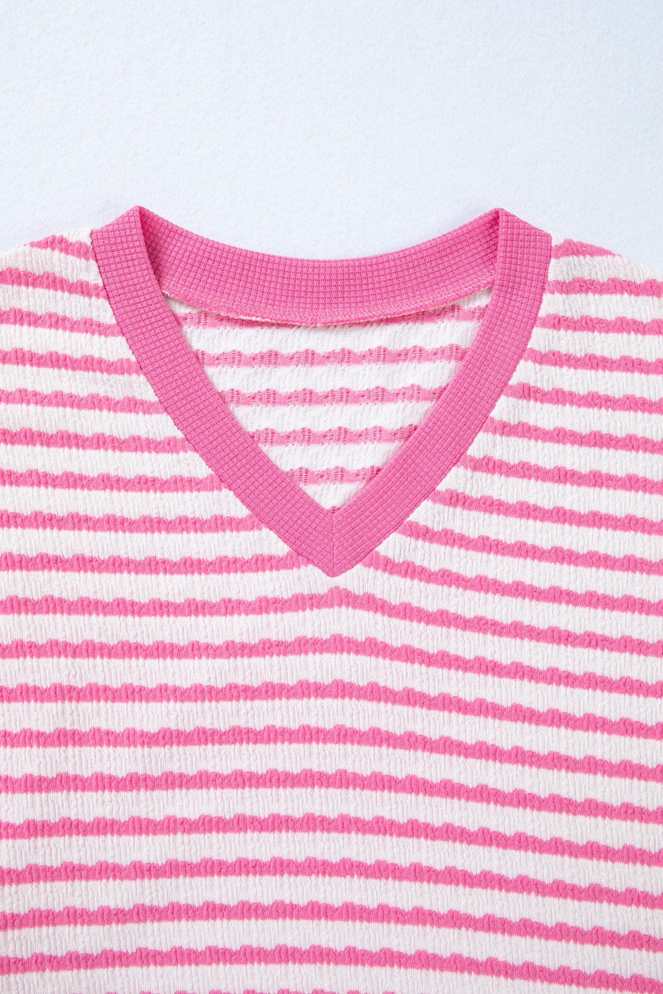Let Georgia Trim Short Sleeve Top do the work for you on days you want instant style with zero fuss. Soft textured knit top offers breathable comfort for everyday wear. Flattering V neck short sleeve top pairs easily with jeans or shorts. Lightweight textured knit fabric provides a chic, elevated casual look. A versatile V neck design that transitions effortlessly from work to weekend. Material: 85%Polyester+10%Viscose+5%Elastane.
