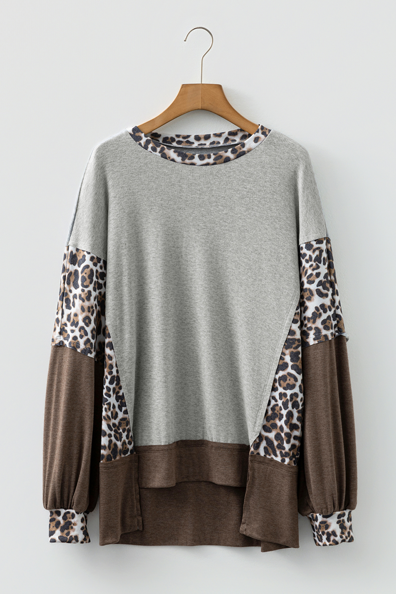 Gia High Low Baggy Sweatshirt is your new go-to piece when you want to feel cute and comfortable. This oversize sweatshirt features stylish color block and leopard patchwork design. The baggy silhouettre and solman sleeves create a laid-back vibe. High-low hem adds modern and flattering detail. Pairs effortlessly with jeans, leggings, or joggers for casual chic looks. Material: 75%Polyester+20%Viscose+5%Elastane.