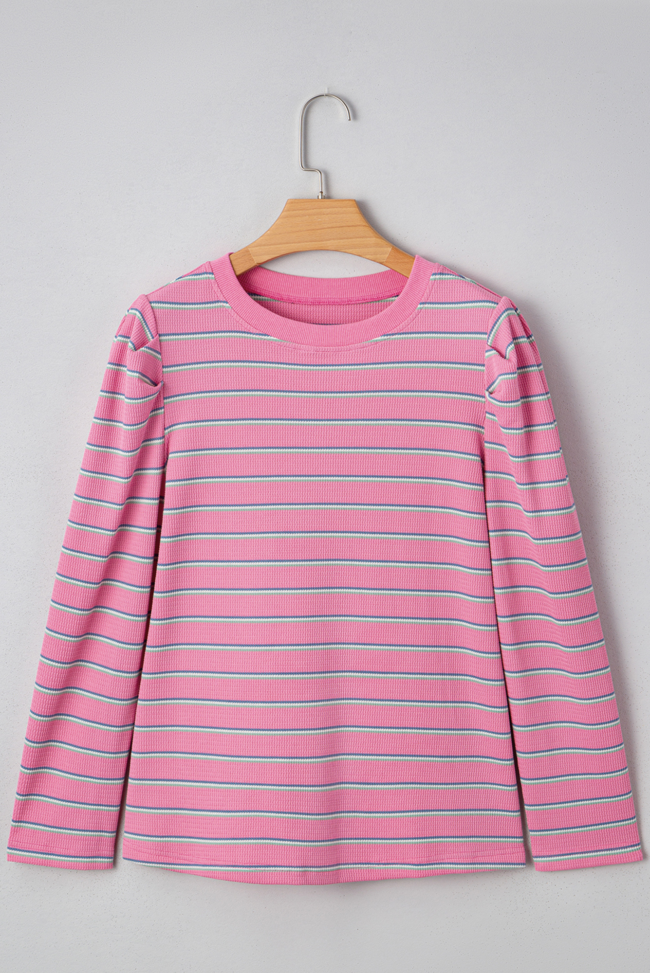 Meet Giana Stripe Textured Knit Long Sleeve Top—effortless, flattering, and easy to style for everyday life. This casual striped top is so well-received. Features a playful textured shell to add more chic. It has a ribbed round neck, long sleeves, and a shift fit. Pair it with our fashion jeans or casual pants to complete your look. There are all kinds of fashion long sleeve tops at dear-lover. Material: 95%Polyester+5%Elastane.
