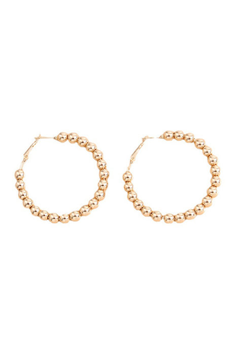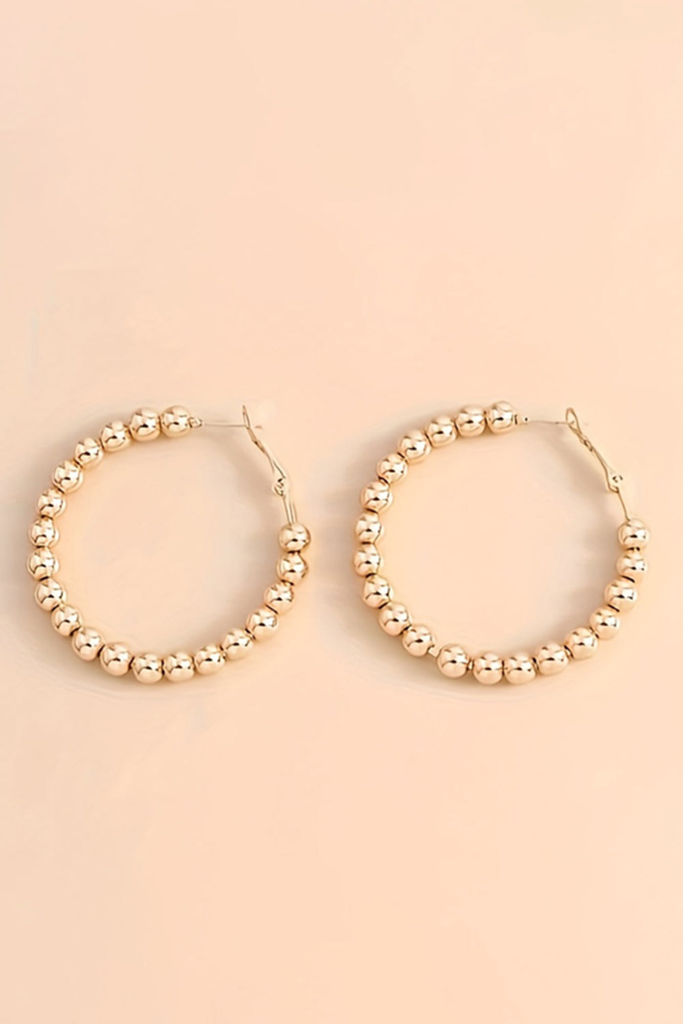 Playful gold beads dance along these chic hoop earrings, bringing a splash of fun to your style game! The plated finish keeps its sparkle through countless adventures, while the thoughtfully designed beads add that perfect pop of personality. Made from sturdy alloy that stands up to your busy life, these versatile hoops transition effortlessly from daytime casual to evening glam.