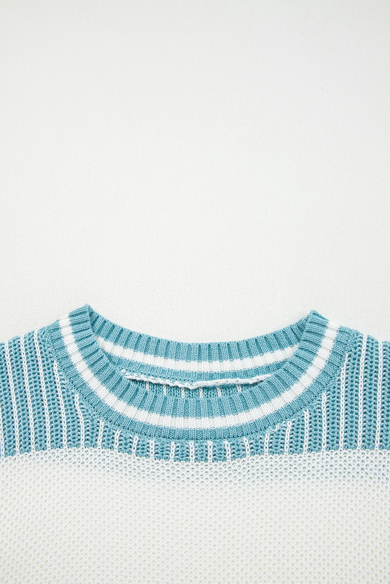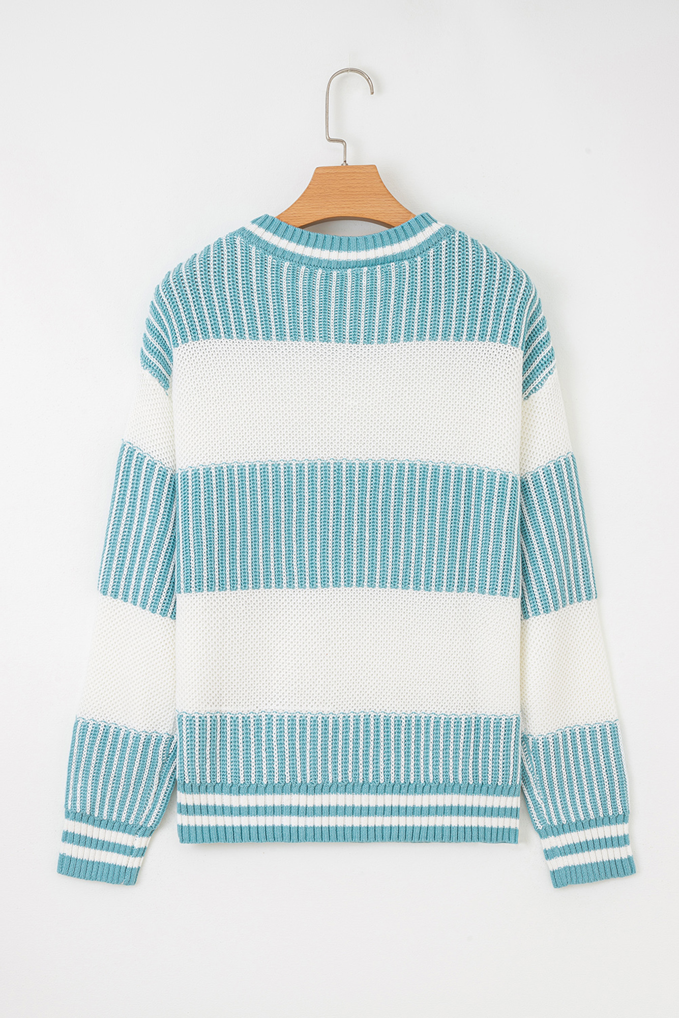 Meet Haley Drop Shoulder Loose Sweater-effortless, flattering, and easy to style for everyday life. Stylish two-tone striped patchwork for a modern, eye-catching look. Relaxed drop shoulder design enhances casual comfort and movement. Soft knit fabric provides cozy warmth for cold season. Loose fit flatters various body shapes and layers easily. Material: 55%Acrylic+45%Cotton.