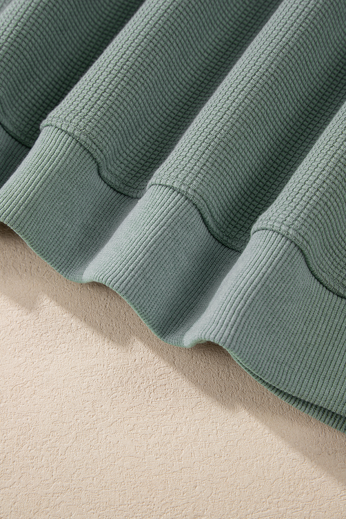 Meet Halo Knit Drop Shoulder Top—effortless, flattering, and easy to style for everyday life. Cozy waffle knit texture for added warmth and style. Trendy drop shoulder design for a relaxed, casual look. Chic V-neckline adds a touch of femininity to the top. Loose fit for a comfortable and flattering silhouette. tops can be dressed up or down effortlessly. Material: 65%Cotton+35%Polyester.