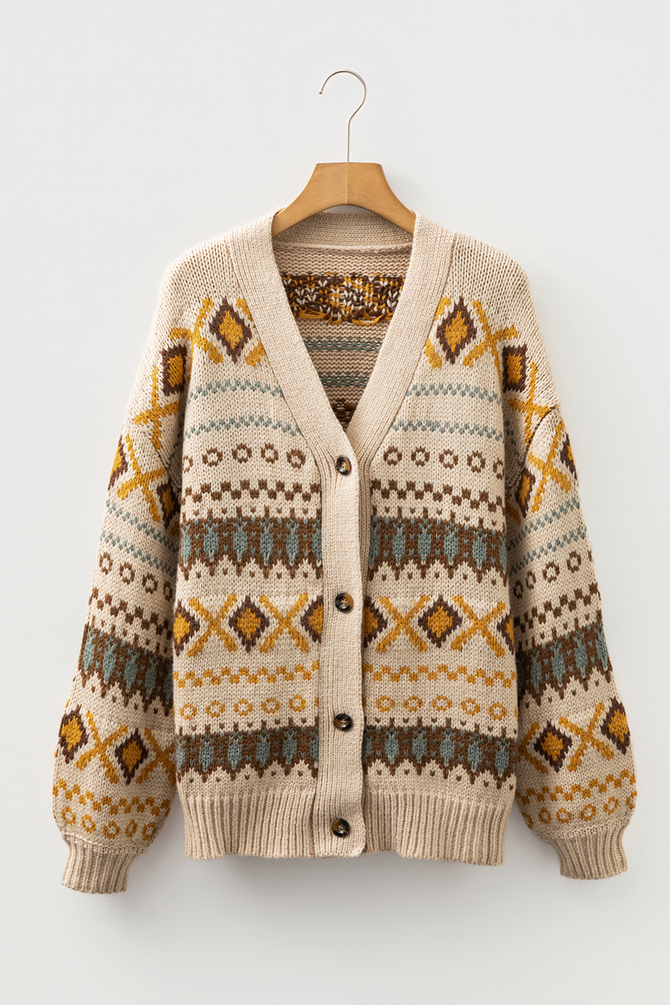 When you want something that feels as good as it looks, Hana Pattern Knitted Cardigan Sweater has you covered. Western cardigan adds a trendy cowboy-chic vibe to your everyday outfit. Button-up V neck cardigan layers perfectly over tees and turtlenecks. Soft, warm fabric makes this knit cardigan ideal for chilly weather style. Unique Aztec-inspired pattern offers standout style. Material: 65%Acrylic+35%Polyamide.