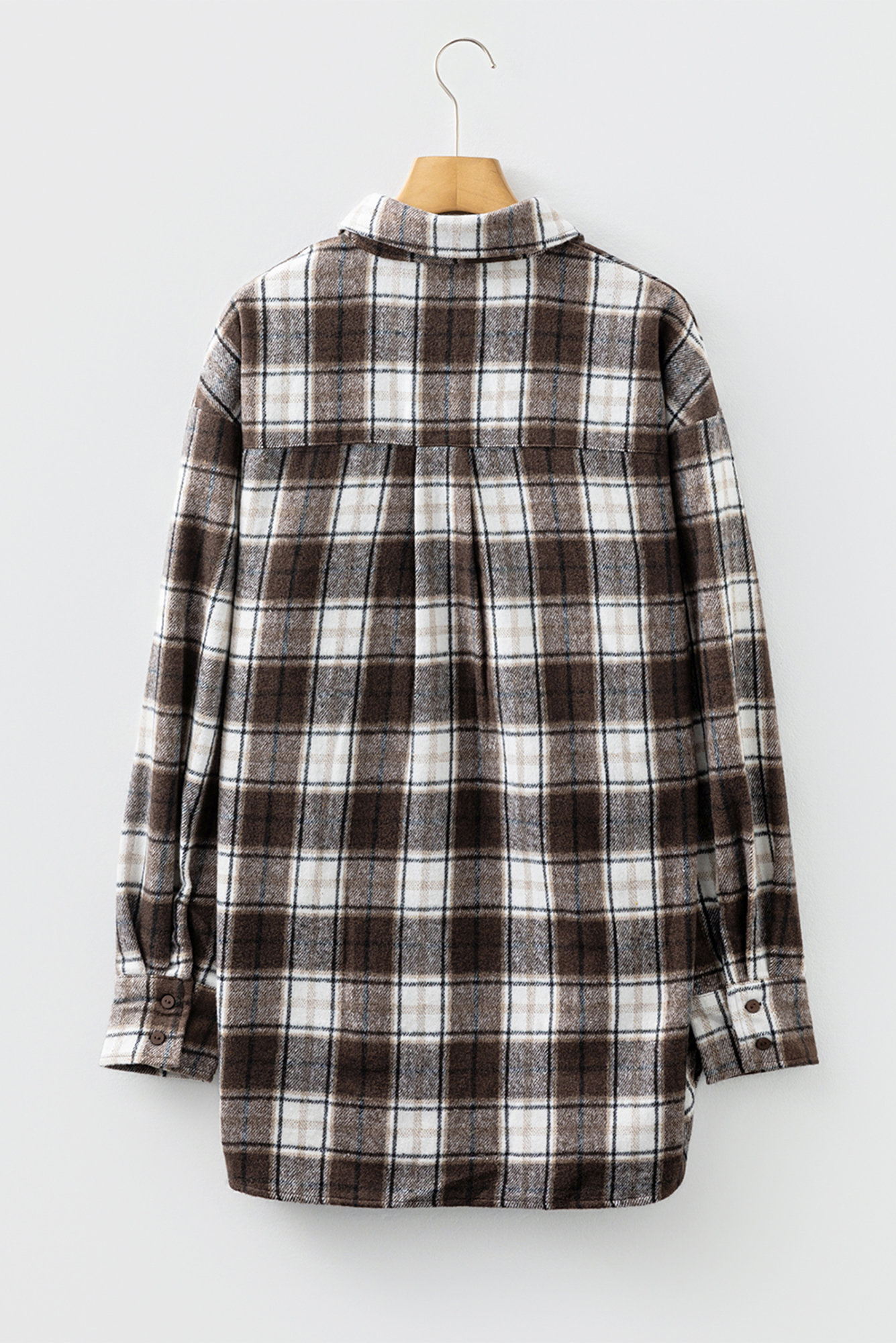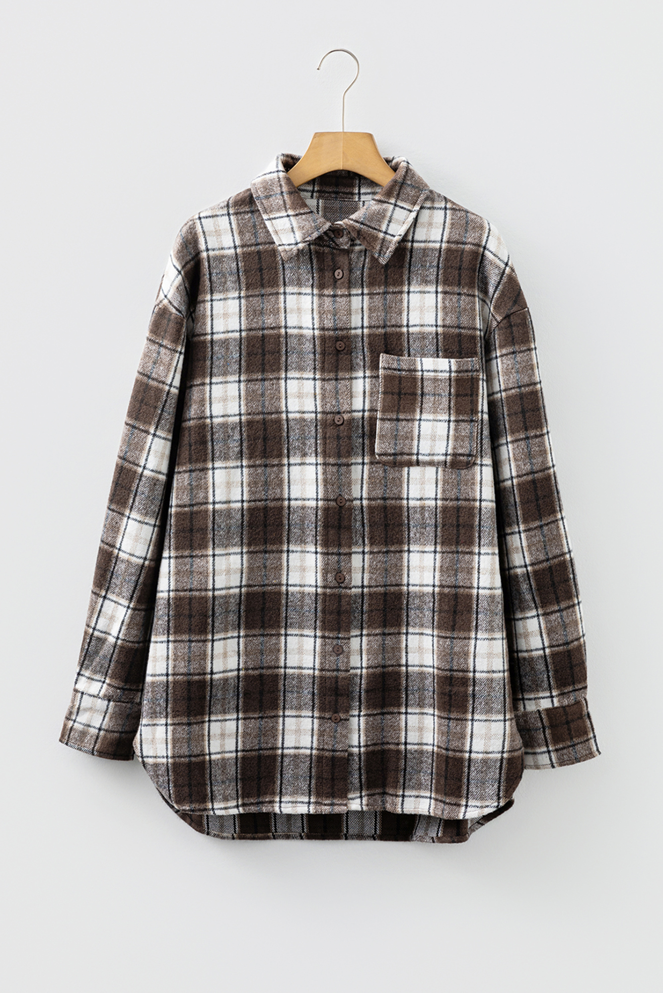 Meet Harper Single Chest Boyfriend Shacket—effortless, flattering, and easy to style for everyday life. Flannel plaid fabric offers cozy, classic warmth. Boyfriend shacket cut ensures a relaxed, oversized fit. Single chest pocket adds practical, casual style. Perfect for layering over tees or sweaters. Versatile shackets for outdoor outings and lounging. Material: 100%Polyester.
