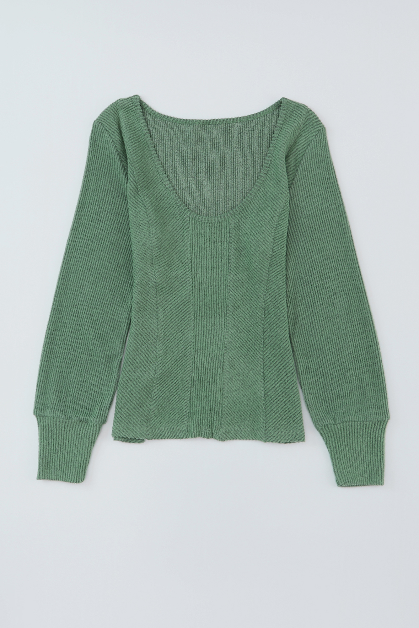 Meet Harper U Textured Long Sleeve Top—effortless, flattering, and easy to style for everyday life. Unique textured design adds a touch of style to this knit top Versatile U neck pairs well with any accessories Long sleeves provide warmth and coverage Perfect for casual or dressy occasions Add your wardrobe with chic long sleeve shirts Material: 95%Polyester+5%Elastane.