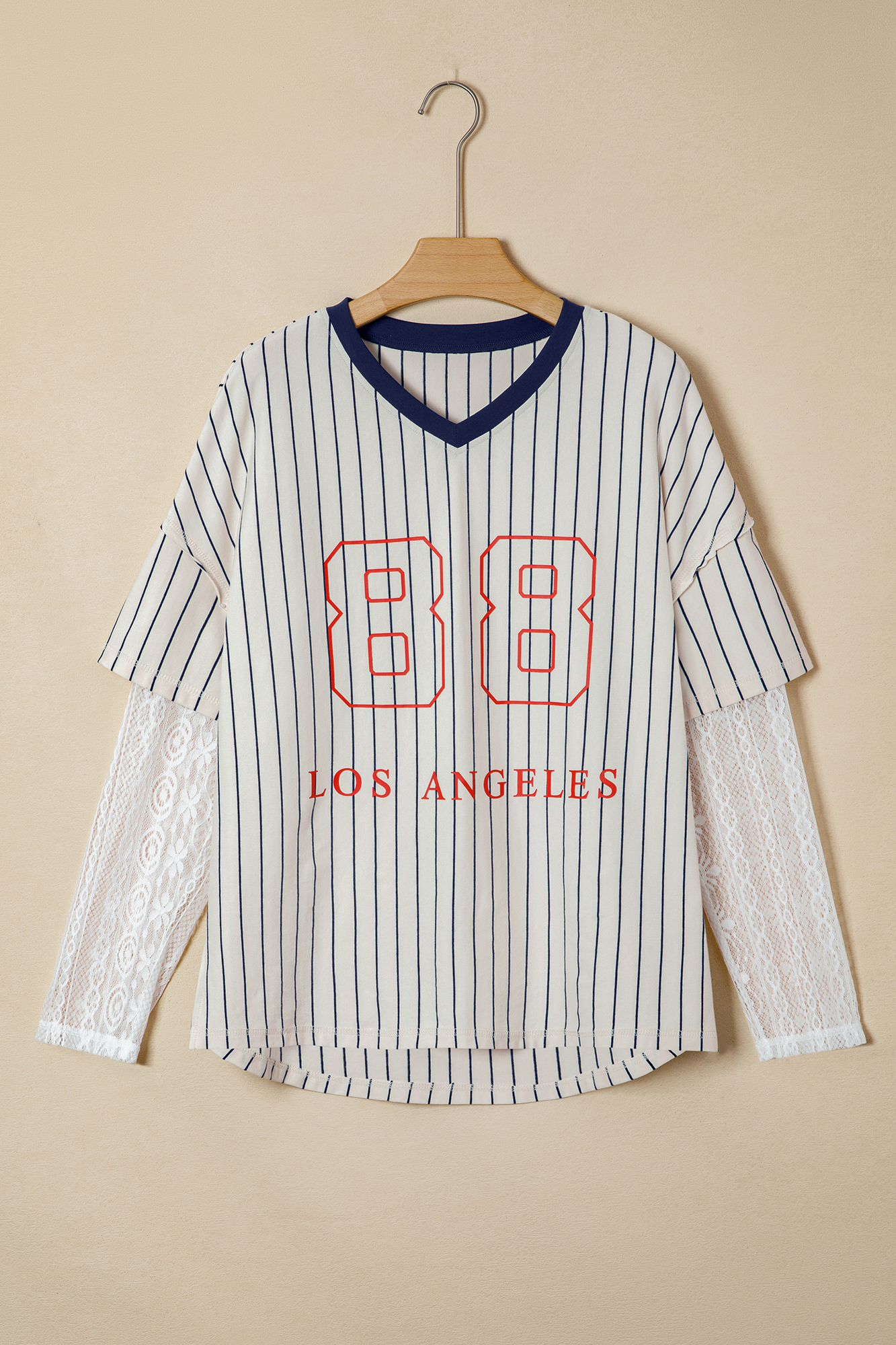 With Holly Faux Two Piece Top, getting dressed is as simple as slip on, style, and go. Trendy graphic V neck tee adds bold street-style appeal. Lace patchwork top detail gives a feminine, stylish contrast. Faux two-piece design creates a layered look without bulk. Long sleeves offer comfy coverage for transitional seasons. Material: 95%Cotton+5%Elastane.