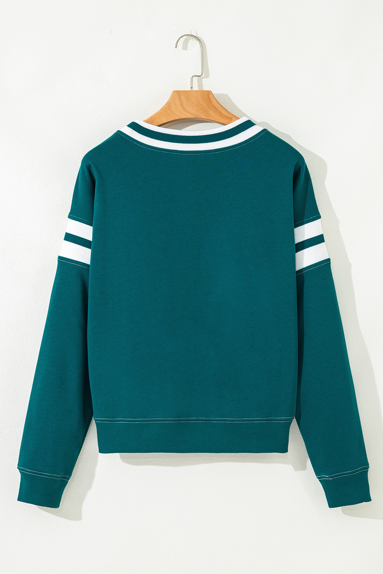 Meet Jadeita Patchwork Drop Shoulder Sweatshirt—effortless, flattering, and easy to style for everyday life. Ready for the weekend in the varsity sweatshirt. It’s slightly cropped with a relaxed fit and dropped shoulder look. This preppy pullover delivers effortless style for any season. Perfect for styling with tailored trousers, denim, or skirts. Buy womens sweatshirts from to perfect your outfits. Material: 65%Polyester+35%Cotton.
