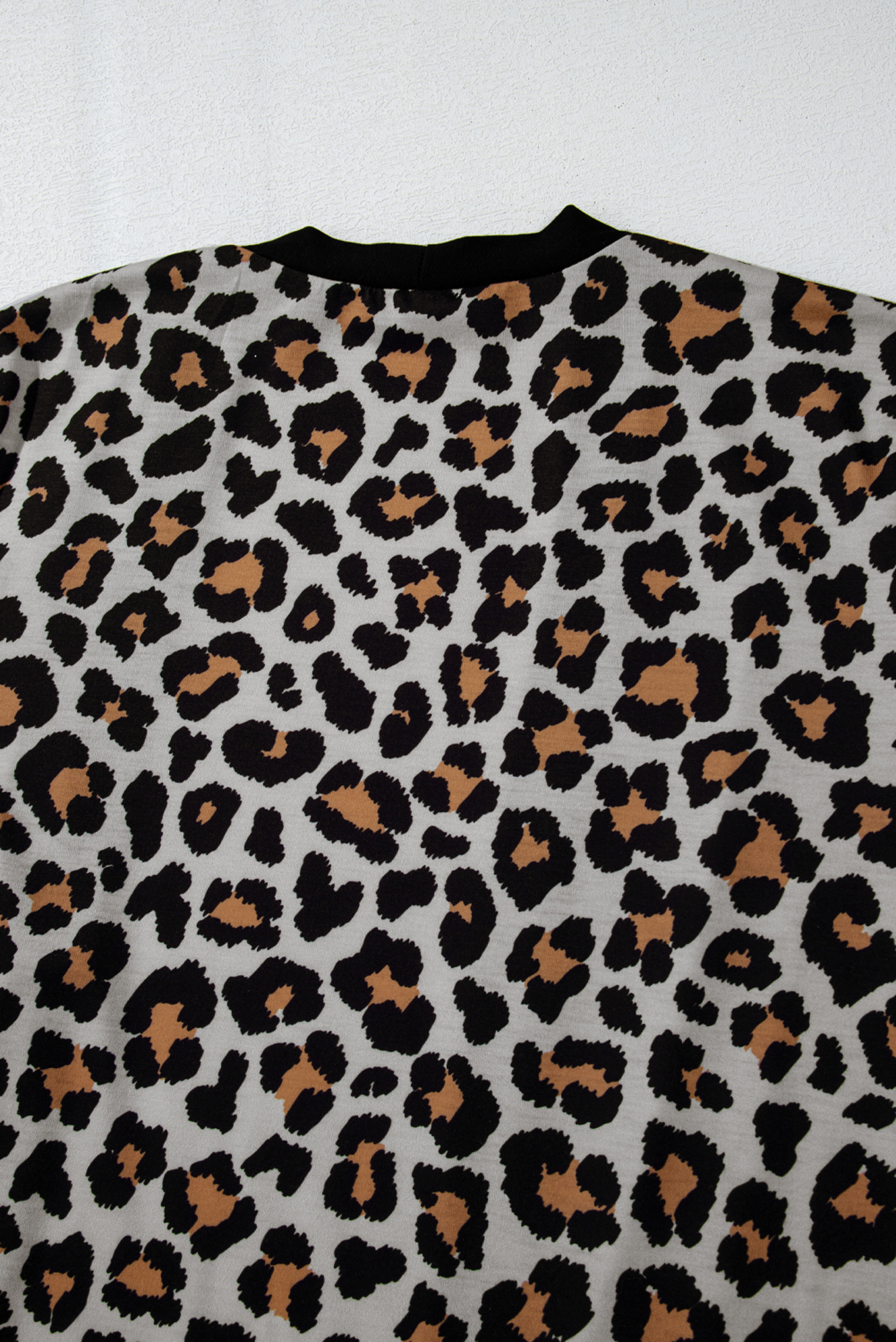 Meet Jazmin Patched Open Front Cardigan—effortless, flattering, and easy to style for everyday life. This stylish cardigan has a classic look with all over leopard print. Dual front pockets for convenience. Open front design drapes elegantly. The contrast solid trim makes this knitted top more structured. cardigans easily pair with any outfit. Material: 95%Polyester+5%Elastane.