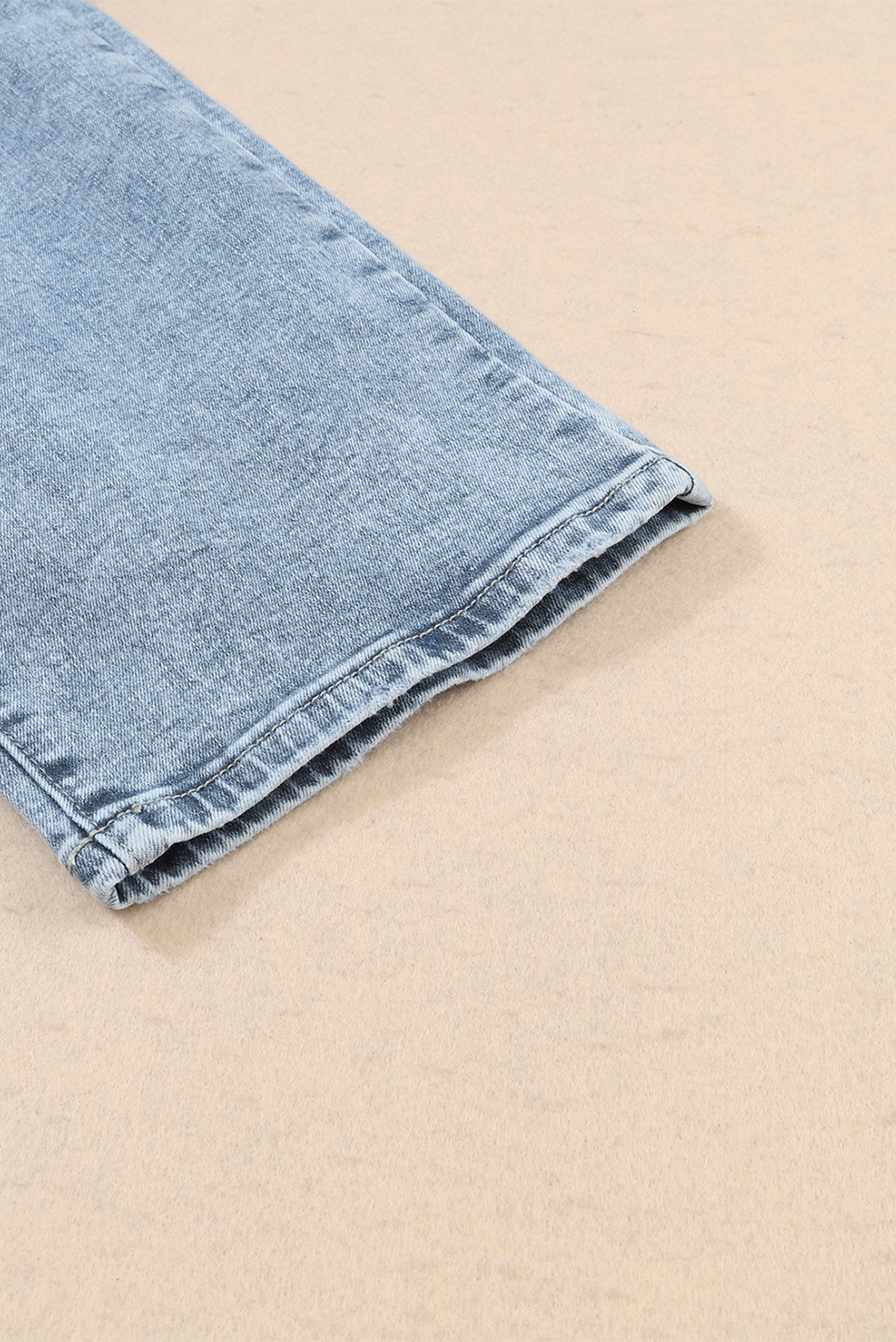Meet Joy Fit High Waist Jeans—effortless, flattering, and easy to style for everyday life. We highly recommend these trendy light-wash jeans The high waistline paired with a slim fit makes your legs look longer The ripped design is stylish and eye-catching, and popular among the young Style with a T-shirt, a blouse, or a hoodie for a fashionable outlook ripped jeans are great to show your fashion sense Material: 93%Cotton+5%polyester+2%Elastane.