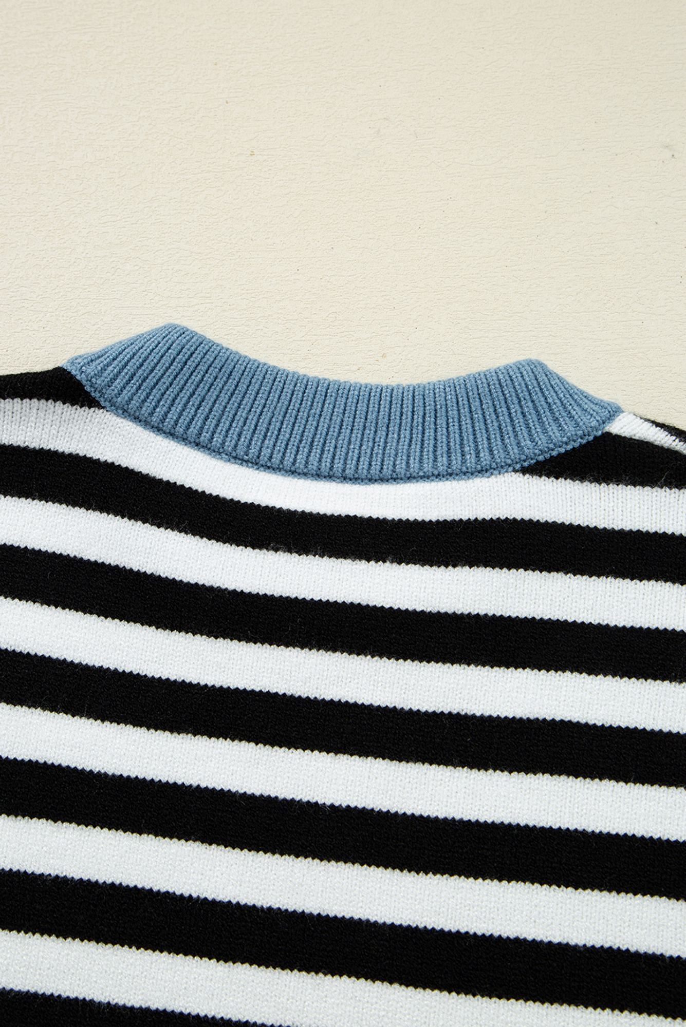 Meet Julieta Colorblock Sleeve Chic Sweater—effortless, flattering, and easy to style for everyday life. This chic sweater features a striped body with color block sleeves patchwork. Both the innovative colorblock and classic stripes are sure to make this knitted top stand out. Crafted from premium knit fabric, this comfortable striped sweater offers both style and cozy warmth. This versatile top pairs effortlessly with jeans, skirts, and tailored pants for various occasions. bulk sweaters cheaply with the latest fashion styles and fine quality. Material: 52%Viscose+26%Polyester+22%Polyamide.