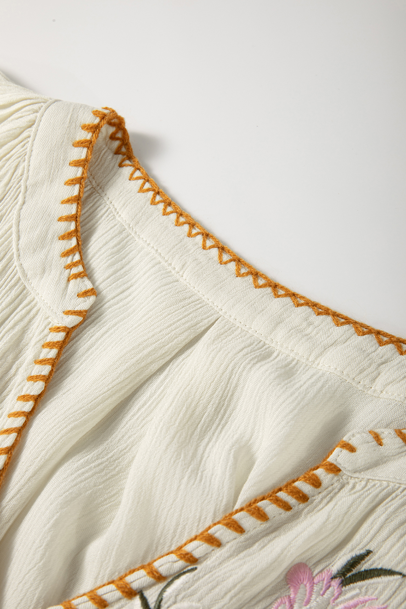 Make June Puff Sleeve Loose Shirt your grab-and-go choice for effortless, everyday dressing. Intricately embroidered floral design adds this shirt elegance and luxury. Textured fabric gives a unique touch to this elegant top. Stylish puff sleeves add a trendy and graceful flair. Loose fit with buttoned closure front for comfort and effortless style. Material: 100%Viscose.