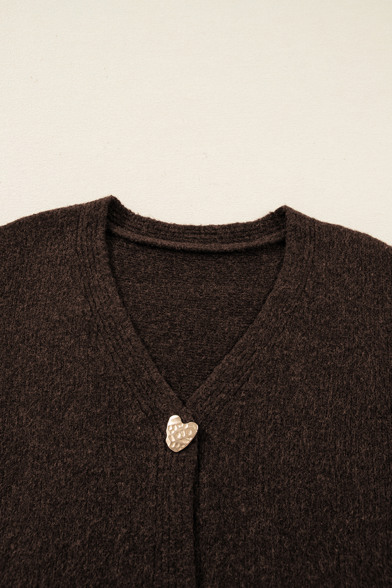Reach for Kassidy Heart Metal Cardigan Sweater whenever you want comfort, confidence, and simple styling. This v neck cardigan sweater is dressy for any occasion. The heart metal buttons design adds elegance and luxury to this knitted top. The v neck design is very flattering and feminine for modern ladies. Soft quality fabric for great stretch and comfort. Material: 79%Polyester+13%Acrylic+5%Wool+3%Elastane.