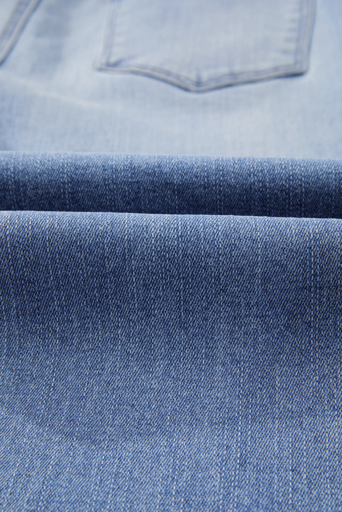 Meet Kendra High Waist Flared Jeans—effortless, flattering, and easy to style for everyday life. The high waist jeans flatter your figure. Stand out in style with a trendy mineral wash finish. Add a touch of edge with raw hem detailing. Embrace retro vibes with fashionable flare bottoms. jeans are provided with a variety of options Material: 71%Cotton+27.5%Polyester+1.5%Elastane.