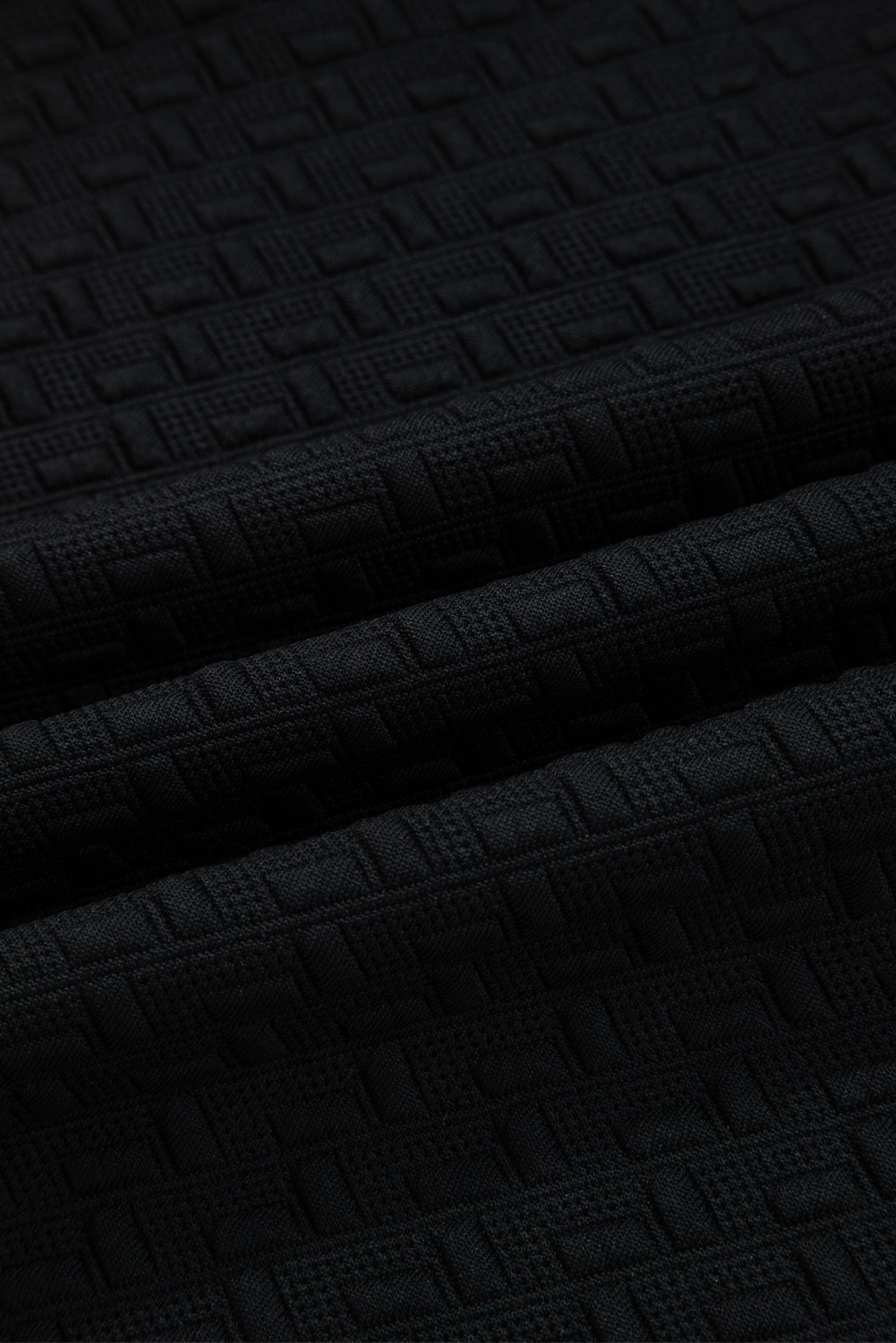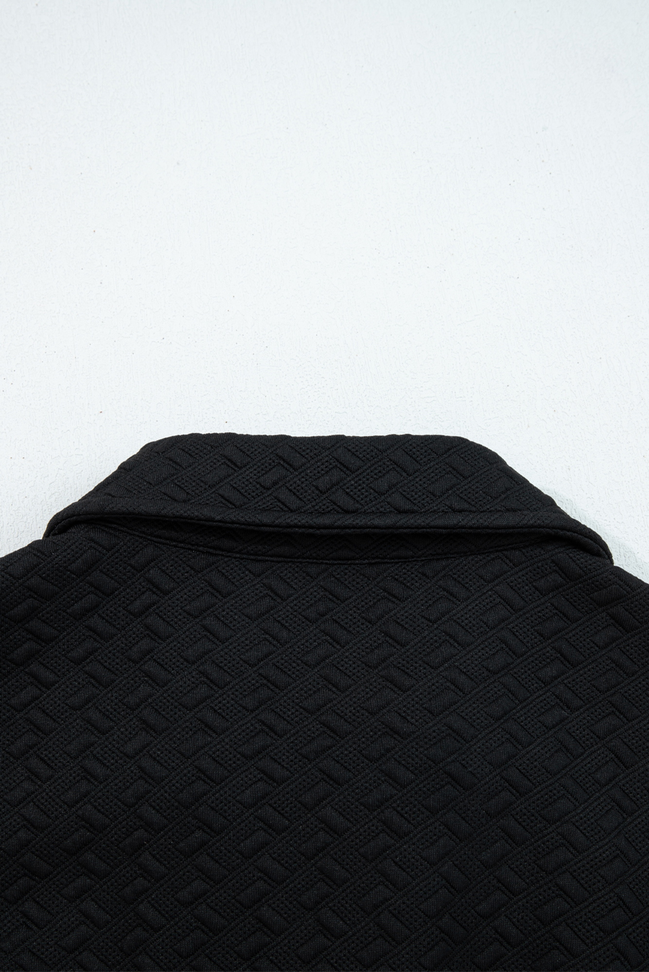 Meet Keziah Patchwork Polo Collar Pullover—effortless, flattering, and easy to style for everyday life. Add a modern touch to any casual wardrobe with this sweatshirt. Featuring a playful, textured shell and contrast striped patchwork. This loose top has a polo collar, v neck, and 3/4 puff sleeves. The striped details accent cuffs and both side panels. sweatshirts are great options for your boutique. Material: 97%Polyester+3%Elastane.