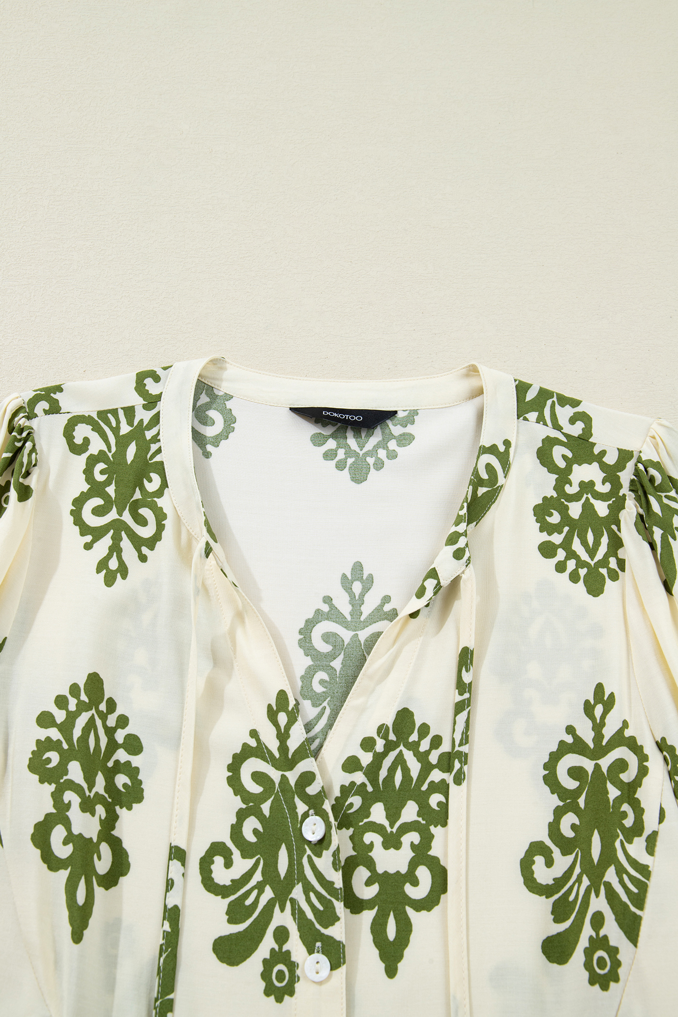 Make Keziah Puffy Half Sleeve Shirt your grab-and-go choice for effortless, everyday dressing. Elegant floral print blouse with tie V neck and button-down front. Puffy half sleeves add a soft, romantic touch to the silhouette. Lightweight fabric keeps you cool and comfy for daily wear. Easy to pair with jeans, skirts, or trousers for chic looks. Material: 100%Viscose.