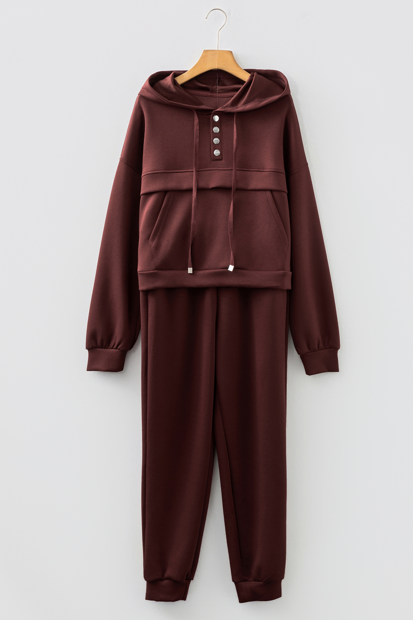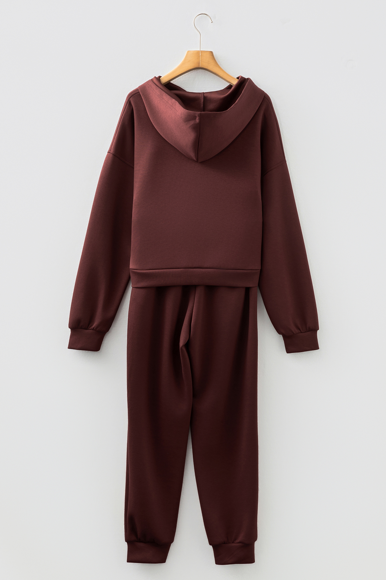 Kimberly Hoodie Jogger 2pcs Set brings you easy comfort with just the right touch of everyday style. Cropped hoodie with button drawstring for adjustable style. Matching joggers complete the cozy two-piece set. Modern cropped fit pairs well with high-waisted bottoms. Perfect for lounging or casual streetwear looks. Matching top and pants set for women is popular for fall and winter. Material: 50%Polyester+45%Viscose+5%Elastane.