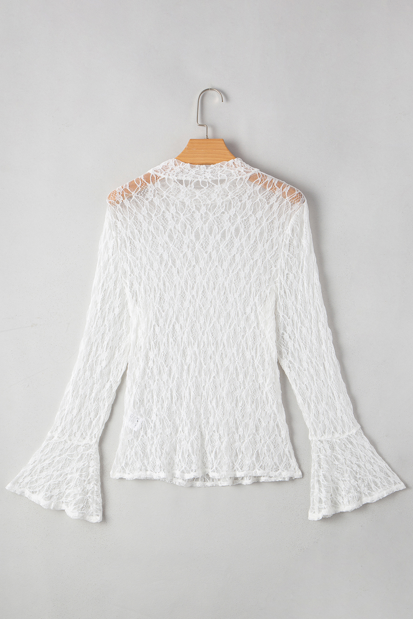 Say hello to Laurel Bell Sleeve Mock Blouse—effortless, everyday style with comfort built in. Delicately designed lace adds a touch of elegance. Reveals a hint of skin with its see-through sheer fabric. Bell sleeves bring a stylish and flattering silhouette. Mock neck offers a sophisticated and modern touch. Material: 90%Polyamide+10%Elastane.