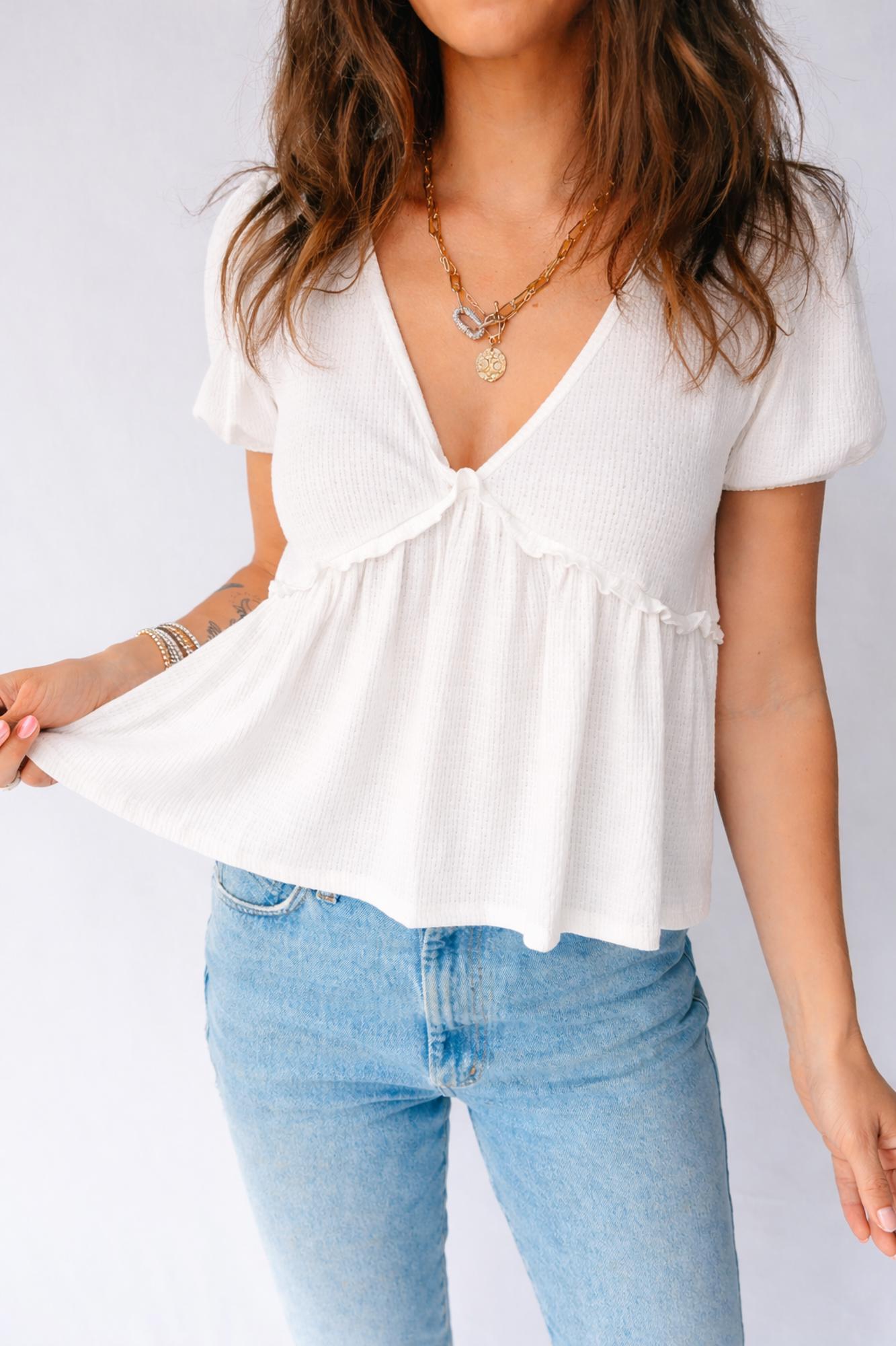Make Lilliana Bubble Sleeve Peplum Top your grab-and-go choice for effortless, everyday dressing. This textured knit top is elegant and feminine with charm. Flattering V neck, short bubble sleeves and a peplum silhouette. This peplum top is very flattering for most and versatile to match. Lightweight, stretchy fabric ensures all-day comfort. Versatile top pairs easily with jeans, skirts, or trousers. Material: 50%Viscose+35%Polyester+10%Polyamide+5%Elastane.