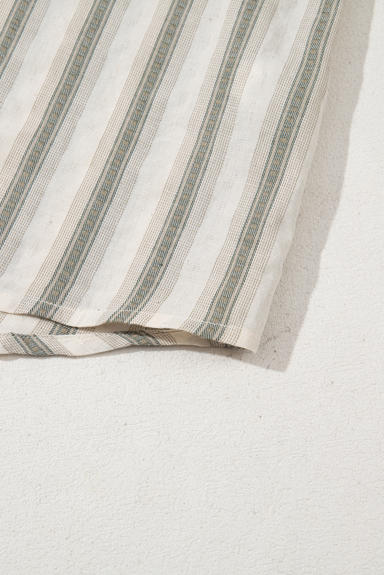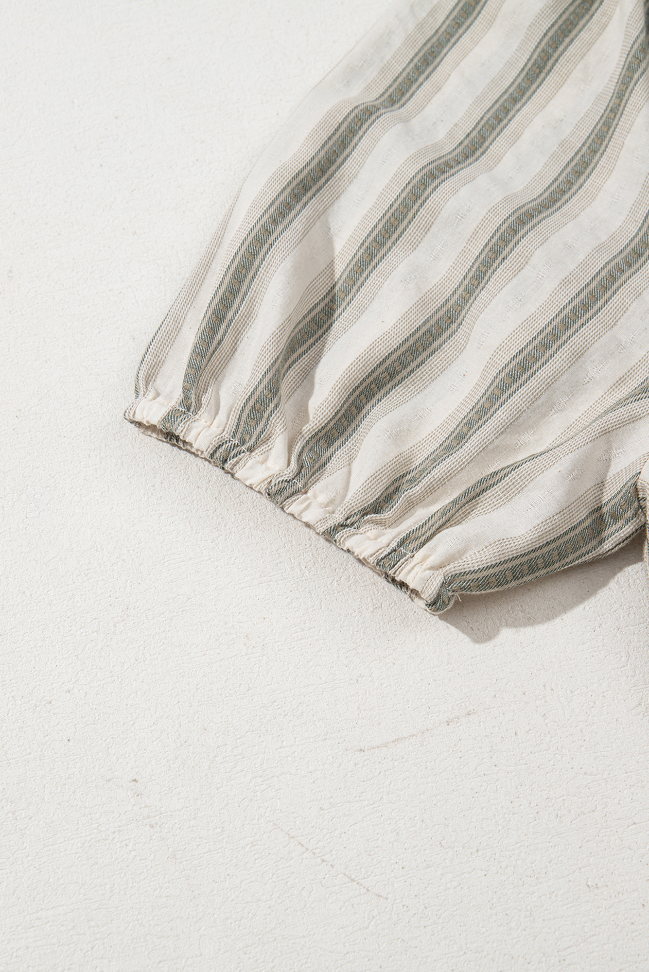 Lorelai Tie Short Sleeve Blouse is made for real life—easy to wear, easy to love. This short sleeve top with striped silhouette is fashionable. Ruffle trimmed v-neckline with front tie accent. Short puff sleeves with elastic cuffs. Easy to match with jeans and cotton pants for a casual style. Material: 100%Cotton.