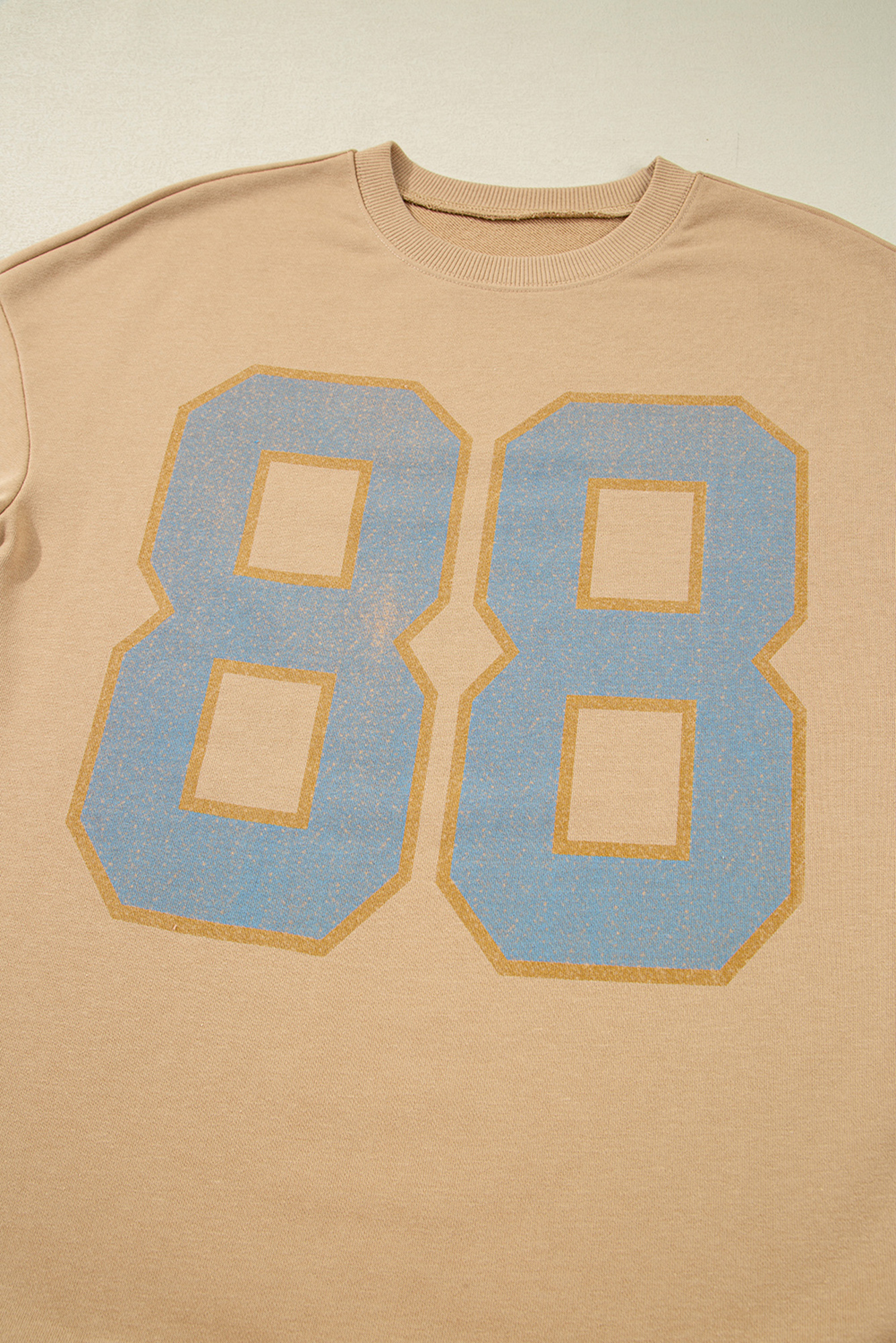 Meet Macy Drawstring Hemline Oversize Long Sleeve Top—effortless, flattering, and easy to style for everyday life. The 88 number graphic gives this chic top a game day vibe. Oversized style makes any body shape look slim. This oversized top is casual and quality. We love its drop shoulder design and adjustable drawstring hemline. Long sleeve going out tops to make your lifestyle more fashionable. Material: 65%Polyester+35%Cotton.