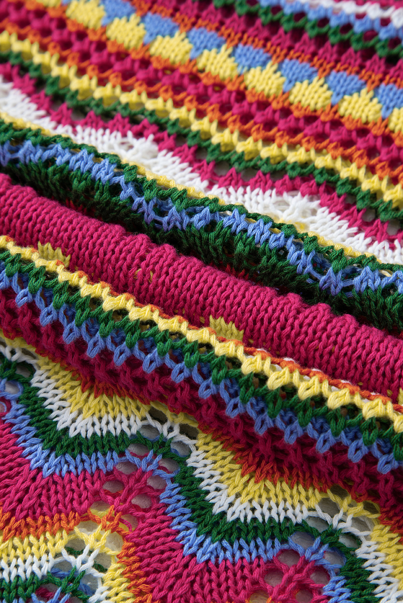 Meet Madison Knit Loose Sleeve Sweater—effortless, flattering, and easy to style for everyday life. Striking colorblock design for a modern twist. Chic striped pattern adds a trendy touch. Intricate hollowed knit detailing for a unique look. Loose sleeves provide a comfortable and relaxed fit. Stay effortlessly stylish with these sweaters . Material: 55%Acrylic+45%Cotton.