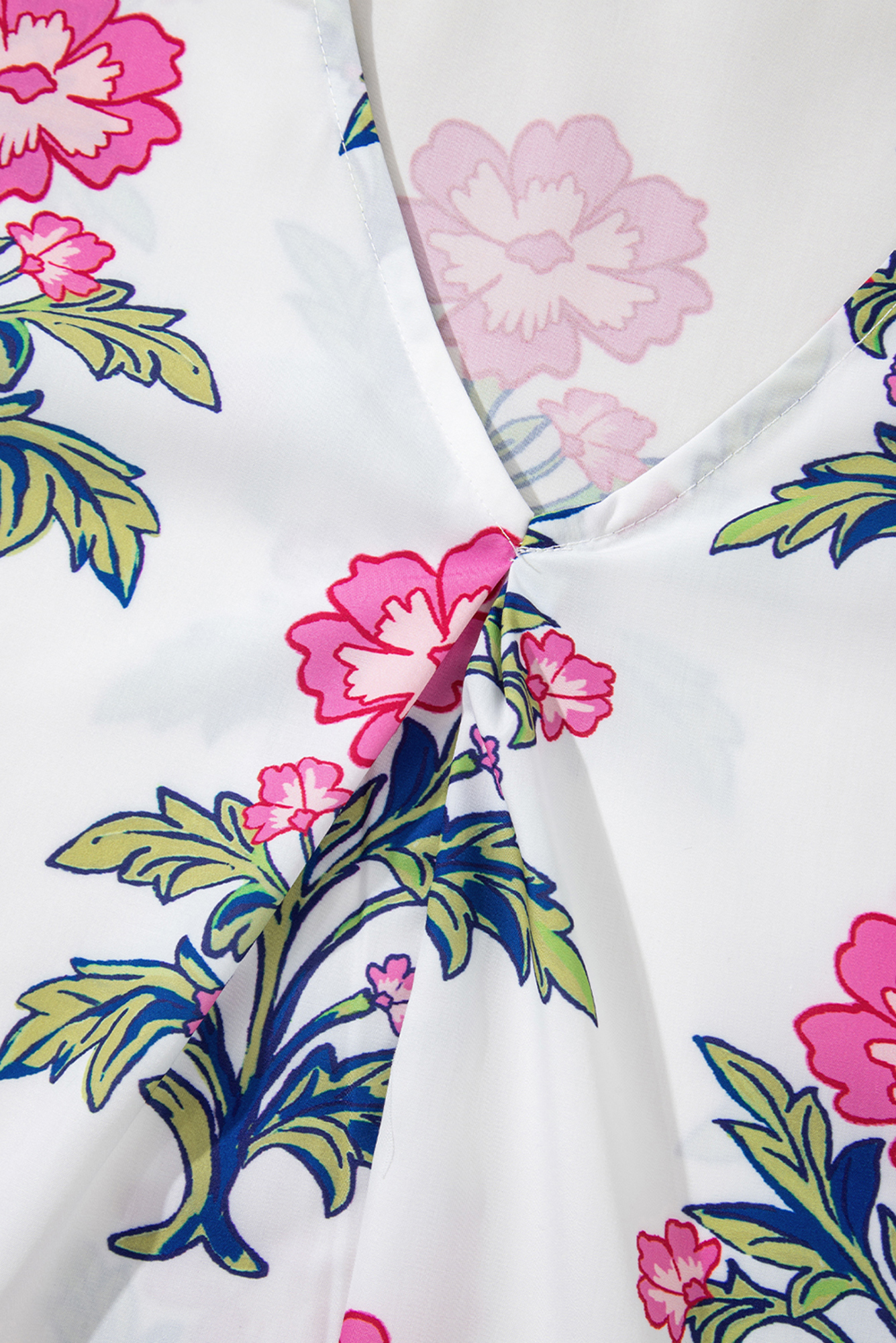 Introducing Mae Knot Bubble Sleeve Blouse—the perfect blend of casual comfort and put-together style. Vibrant floral and color block patterns blend beautifully. Stylish striped knot adds a chic touch to the design. Bubble sleeves create a trendy and playful look. Flattering V-neck neckline enhances the overall appeal. Material: 100%Polyester.