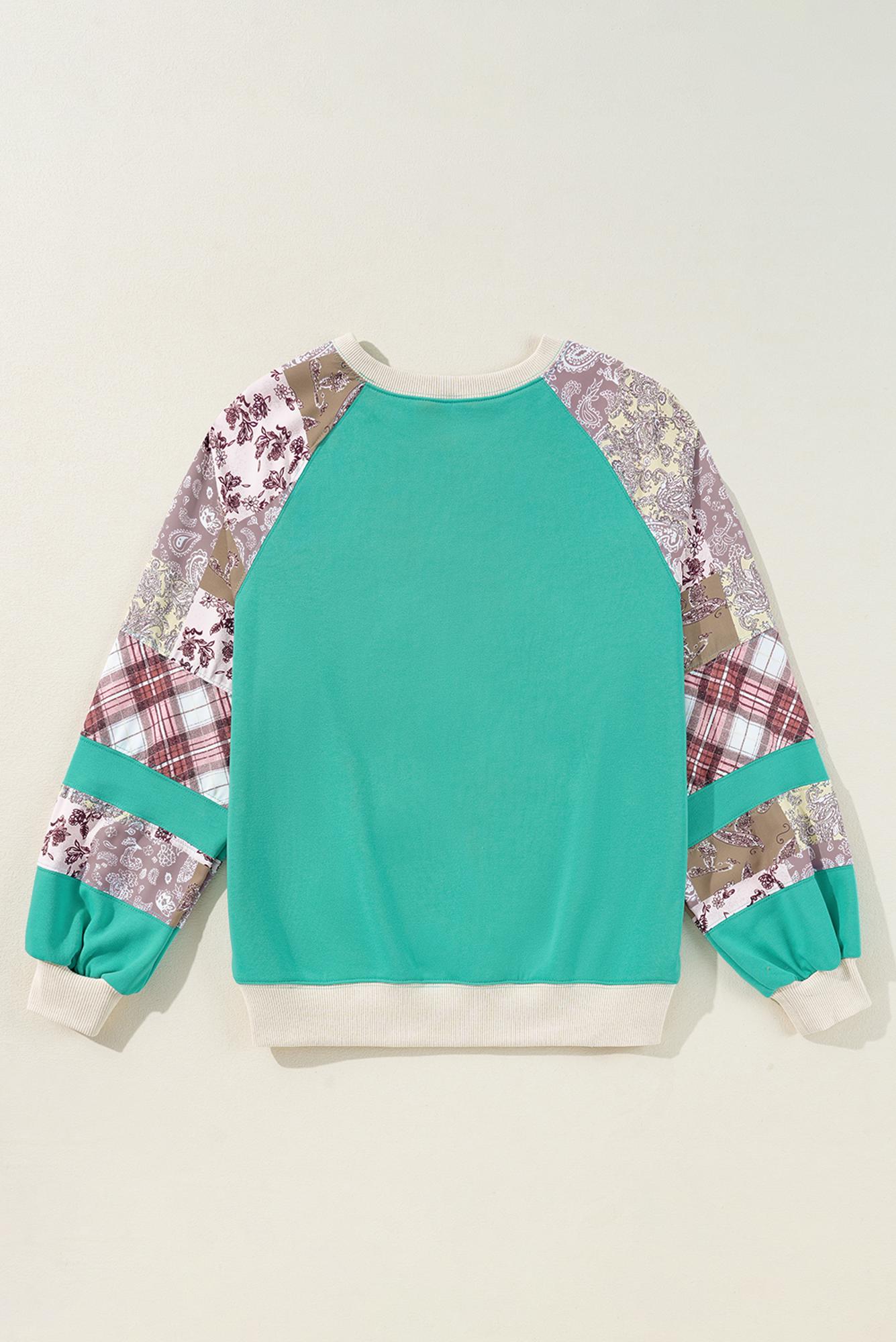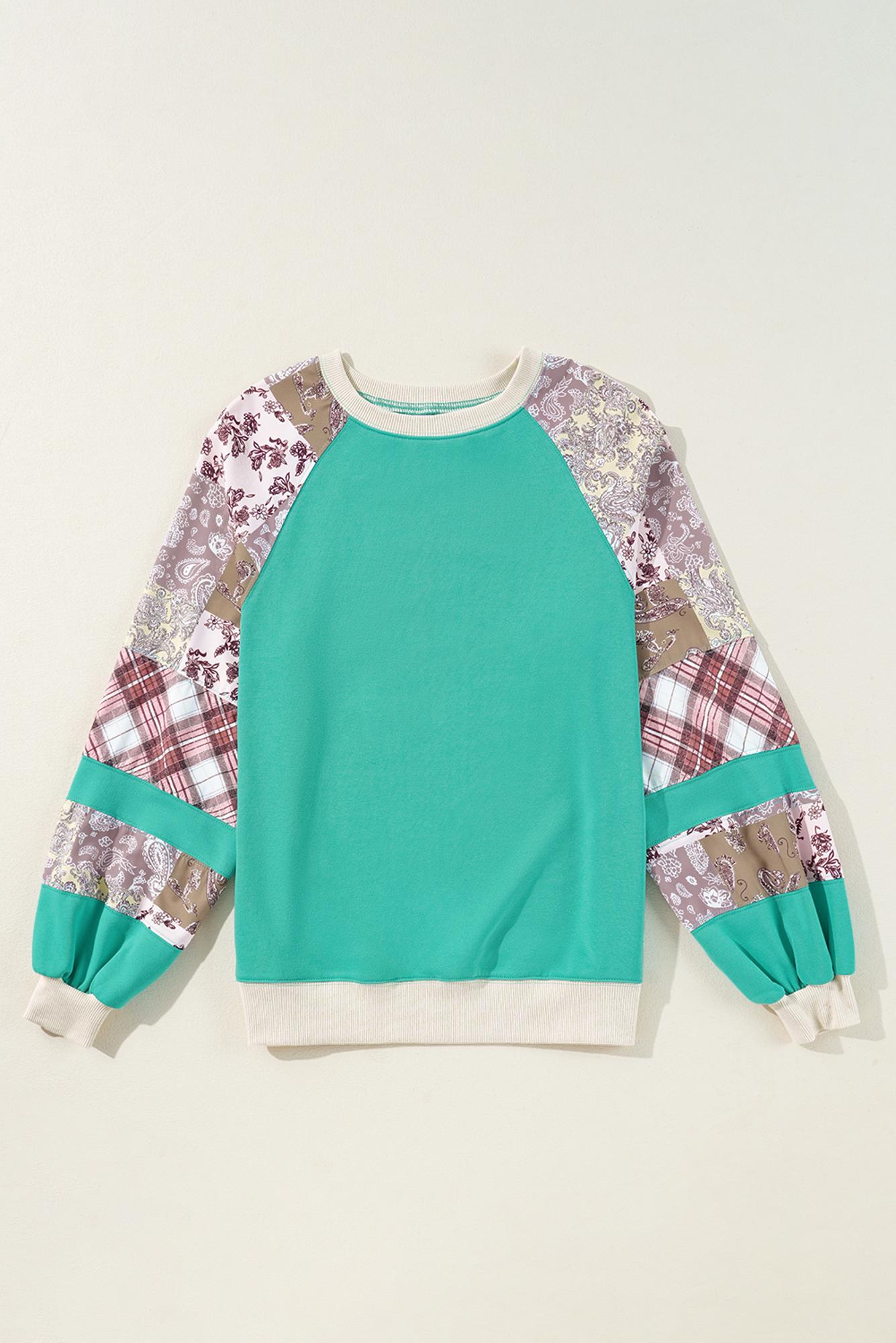 Meet Maeve Sleeve Raglan top Long Sleeve Top—effortless, flattering, and easy to style for everyday life. The top combines vintage plaid with paisley patterns for a unique and eye-catching look. The raglan patchwork showcases a chic unique construction. The contrast neckline and sleeve cuffs also make an appealing color block effect. This raglan top pairs well with both jeans and joggers. tops for women include chic styles for four seasons. Material: 70%Polyester+30%Cotton.