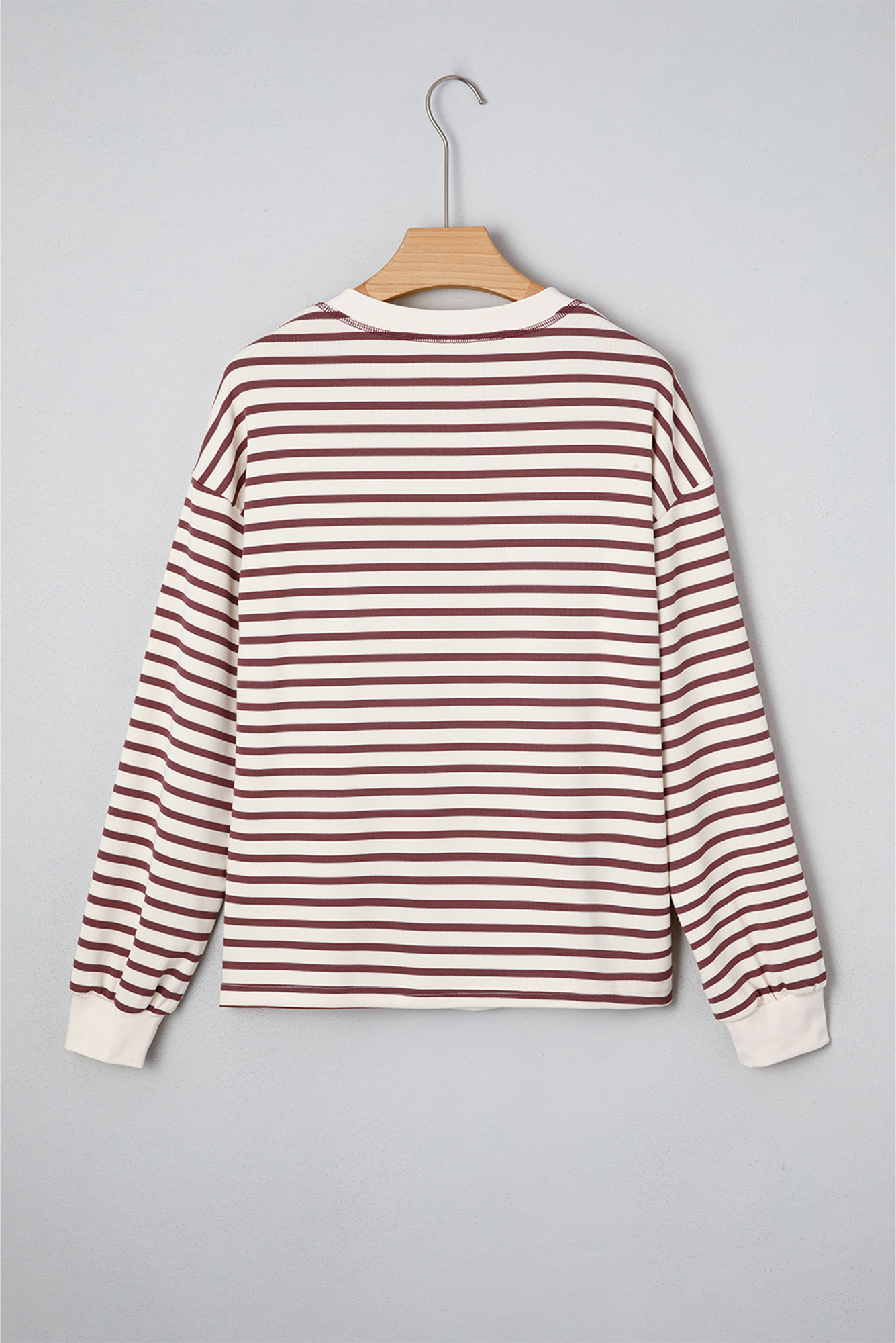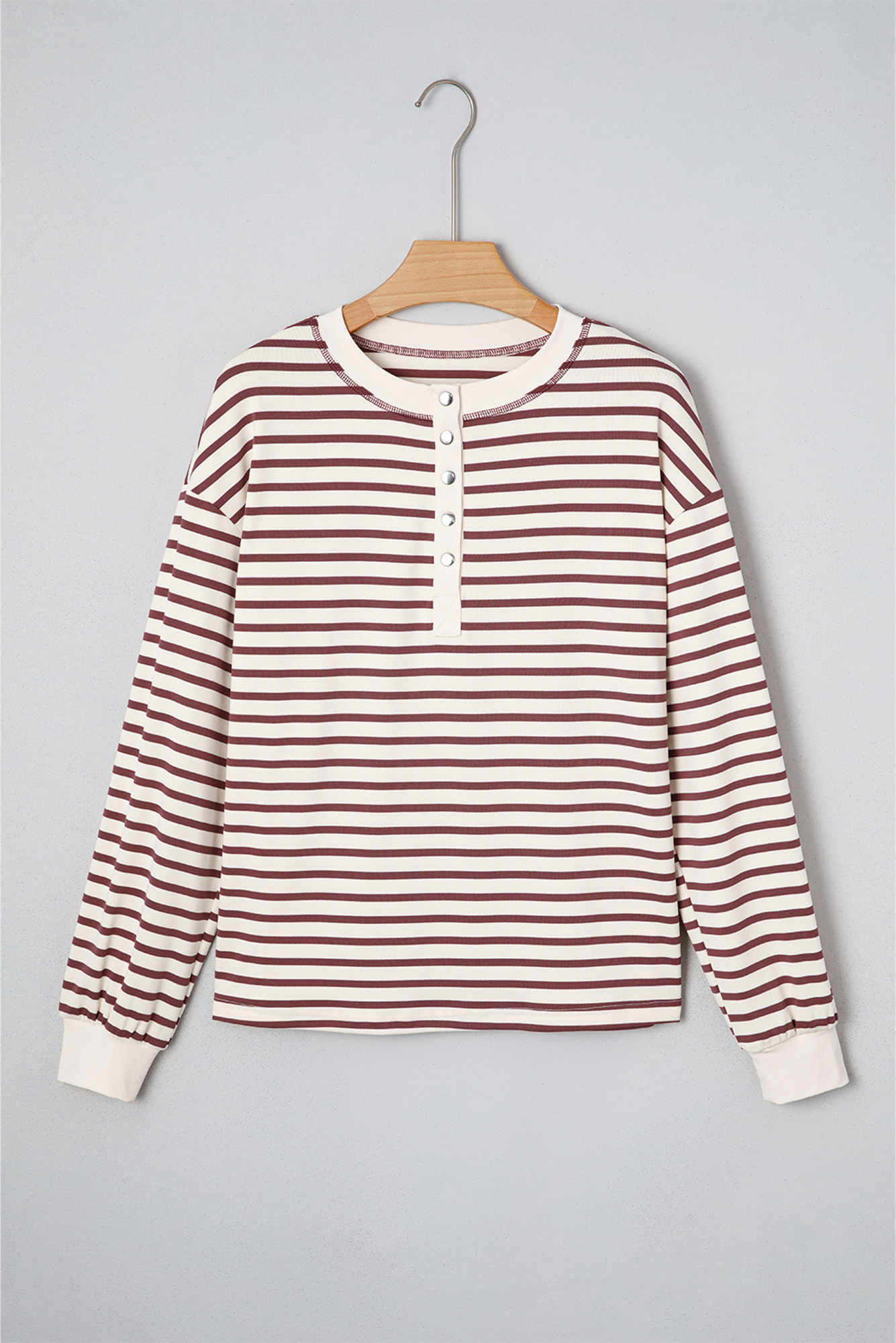 Meet Margaret Sleeve Henley top Long Sleeve Top—effortless, flattering, and easy to style for everyday life. You’ll love this casual Henley top at first sight. Featuring a trendy striped pattern and snap buttons. It fits true to size with a lightly relaxed style and nice length. This is a cute option for pairing with shorts now, or jeans in the fall. has long sleeve tops for women at cheap prices. Material: 95%Polyester+5%Elastane.