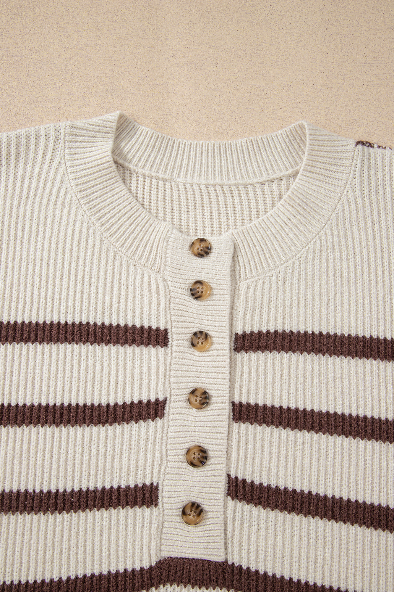 Meet Mckenzie Drop Shoulder Slouchy Sweater—a flattering, easy-to-wear piece you'll reach for again and again. Striped pattern creates classic nautical appeal with visual interest. Henley neckline offers casual style with button-front versatility. Drop shoulder design ensures relaxed comfortable fit. Slouchy silhouette provides cozy volume and effortless styling. Material: 52%Viscose+26%Polyester+22%Polyamide.