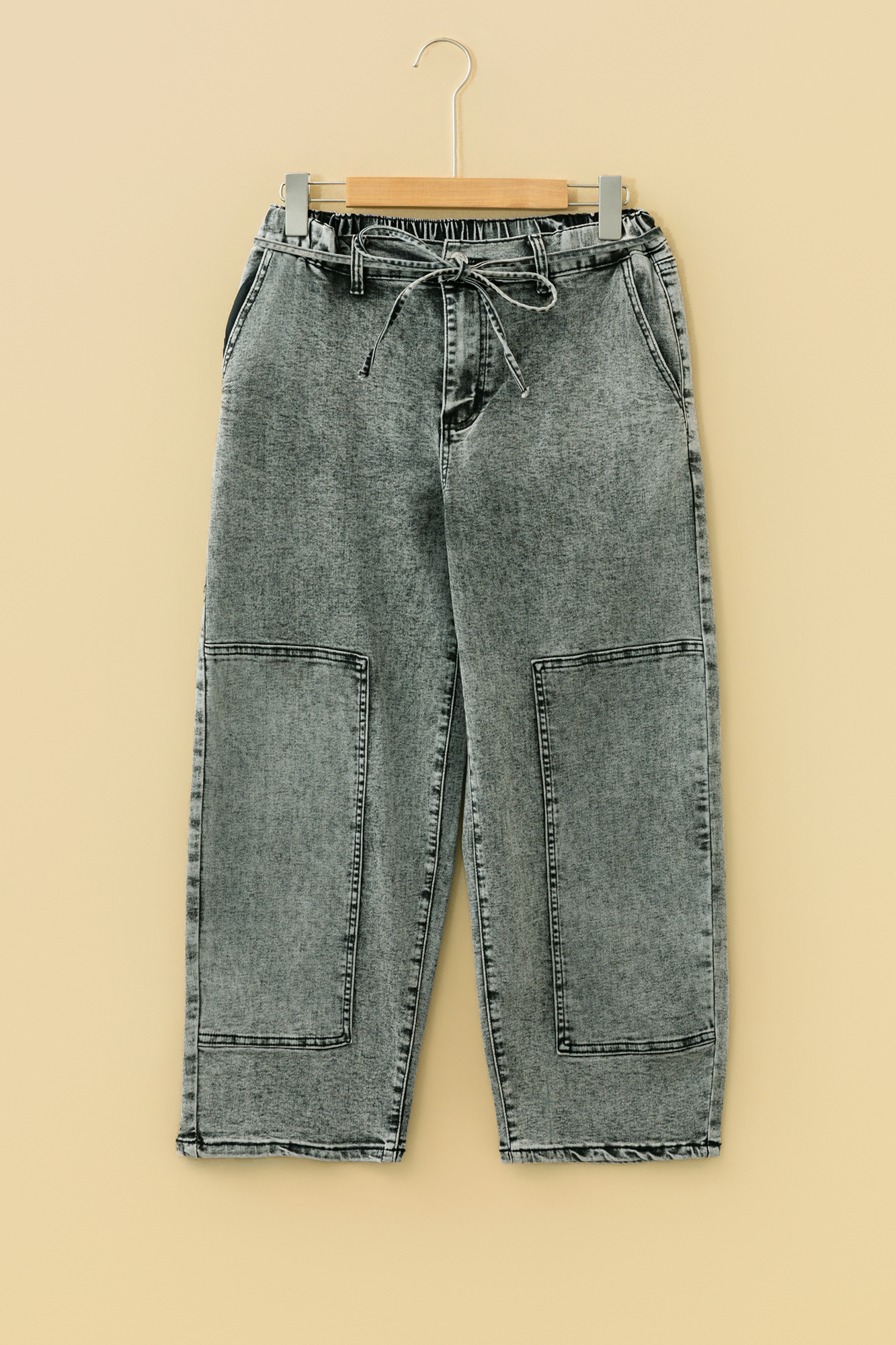 Slip into Mckinley Wash Barrel Fit Pants—soft, easy, and perfect for busy days on the go. Trendy acid wash denim gives a bold, vintage-inspired streetwear look. Barrel fit silhouette creates a relaxed, fashion-forward shape. Adjustable waist string offers flexible fit and added styling control. Durable denim fabric ensures everyday comfort and long-lasting wear. Material: 75%Cotton+23%Polyester+2%Elastane.