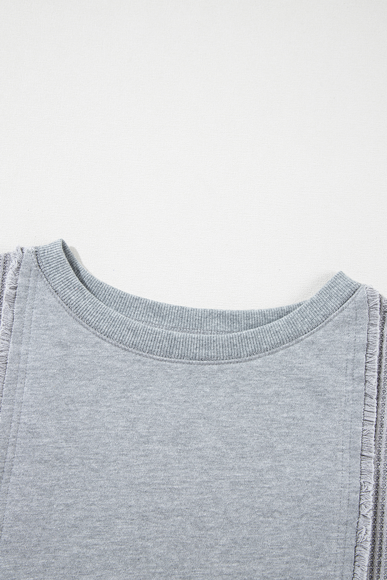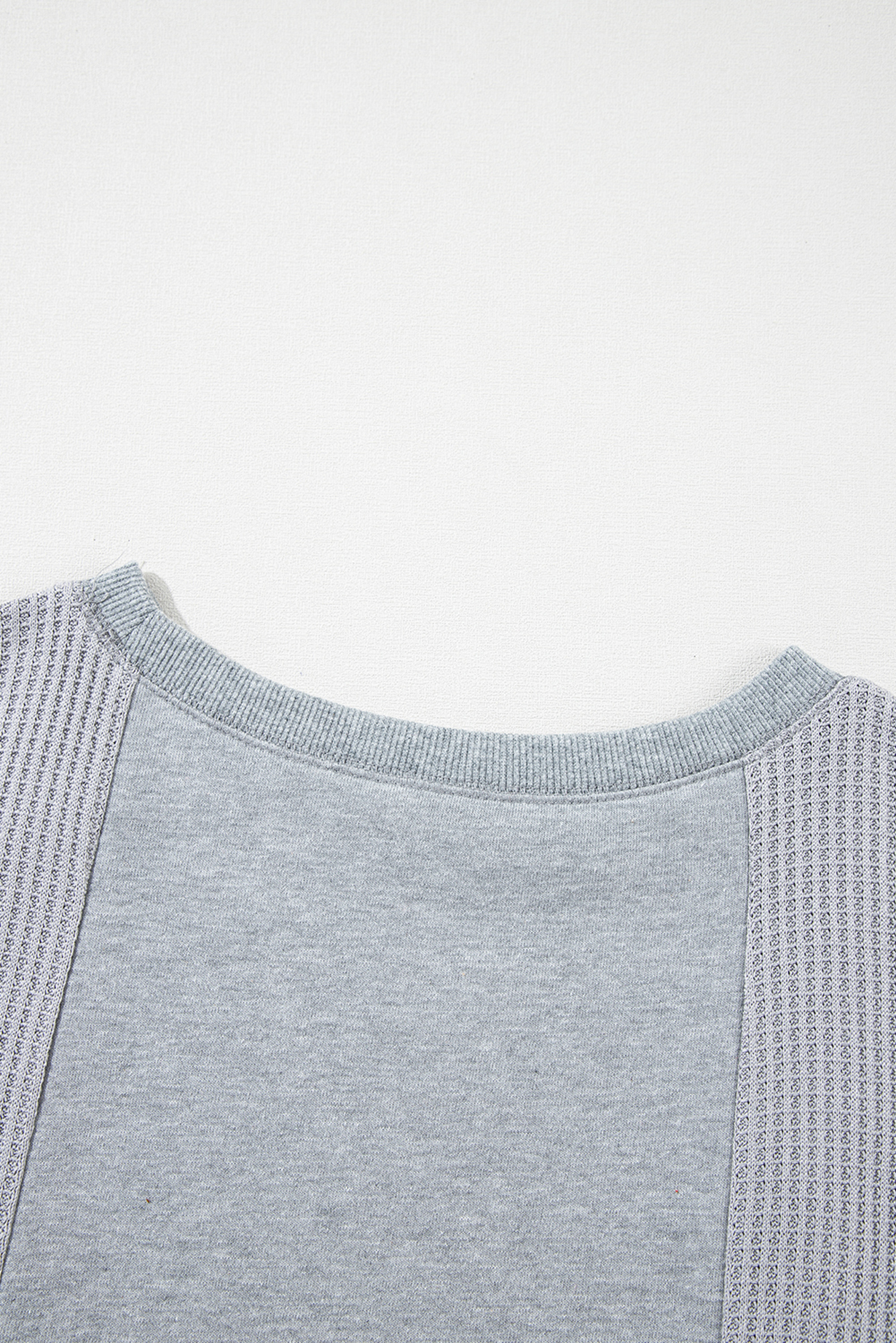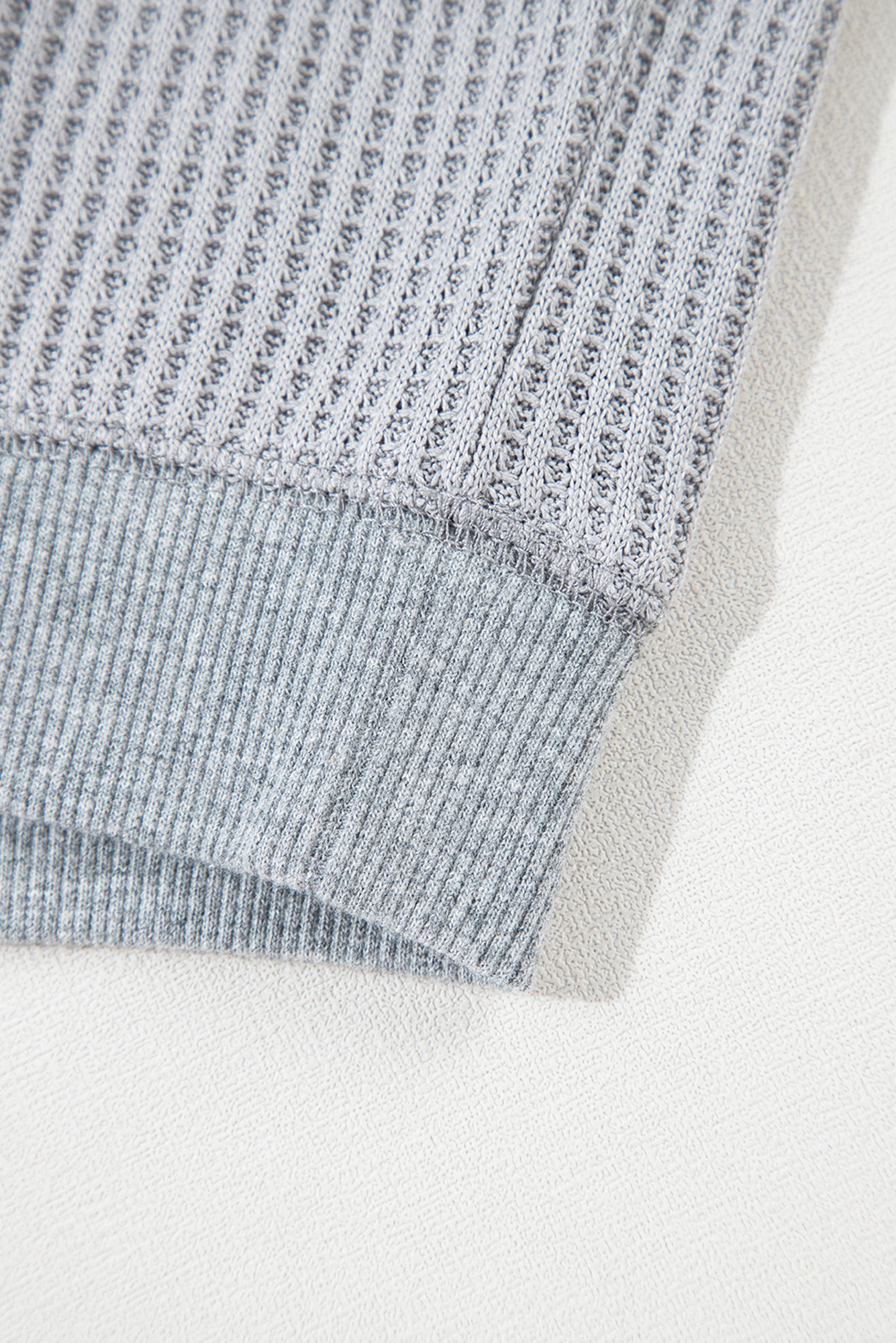 Meet Mercy Hem Pullover top Long Sleeve Top—effortless, flattering, and easy to style for everyday life. The pullover top is crafted with a cozy waffle-knit patchwork design. Long sleeves and a loose fit provide extra coverage and warmth. Raw hem details add a touch of edginess and a casual vibe to the pullover. Well-matched with jeans or skirts for a stylish outfit. The patchwork design brings a unique, artistic vibe to this versatile piece. Make a statement with our affordable long sleeve tops . Material: 65%Polyester+35%Cotton.