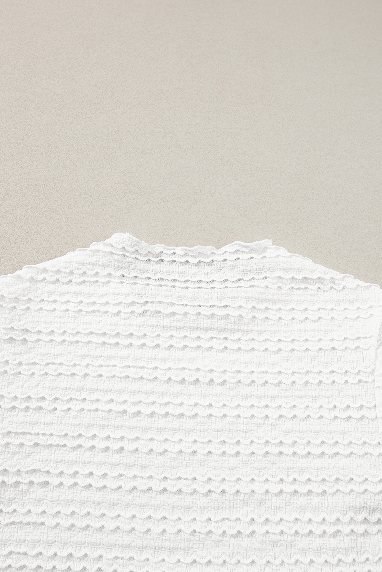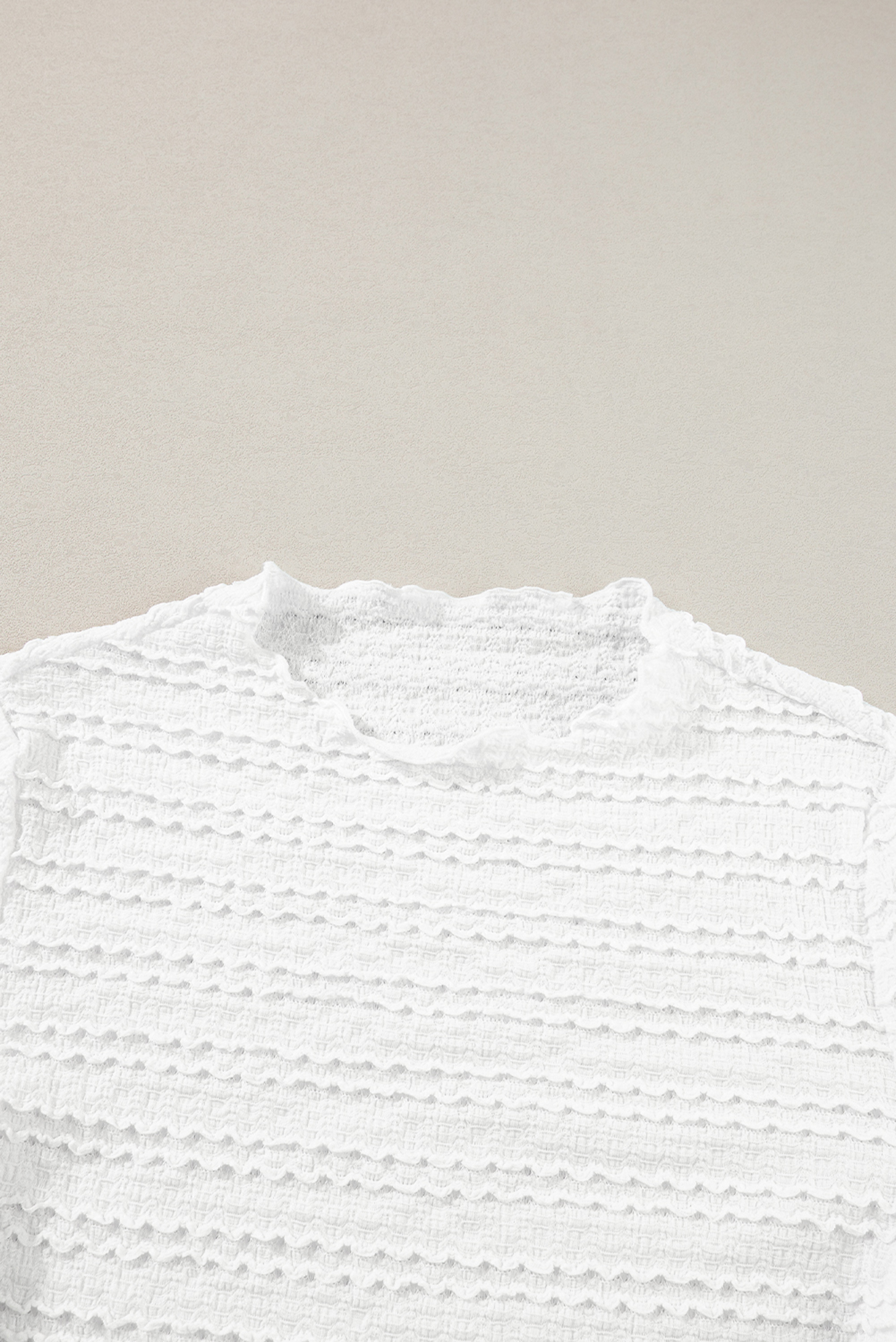 Meet Mia Jacquard Slim Fit Top—effortless, flattering, and easy to style for everyday life. Stylish slim fit design for a flattering silhouette. Textured fabric adds a trendy touch to your look. Curled hem detail for a playful and chic finish. This jacquard knit top is sexy stylish to pair with jeans. Comfortable to wear all day, tops are perfect for various occasions. Material: 95%Polyester+5%Elastane.