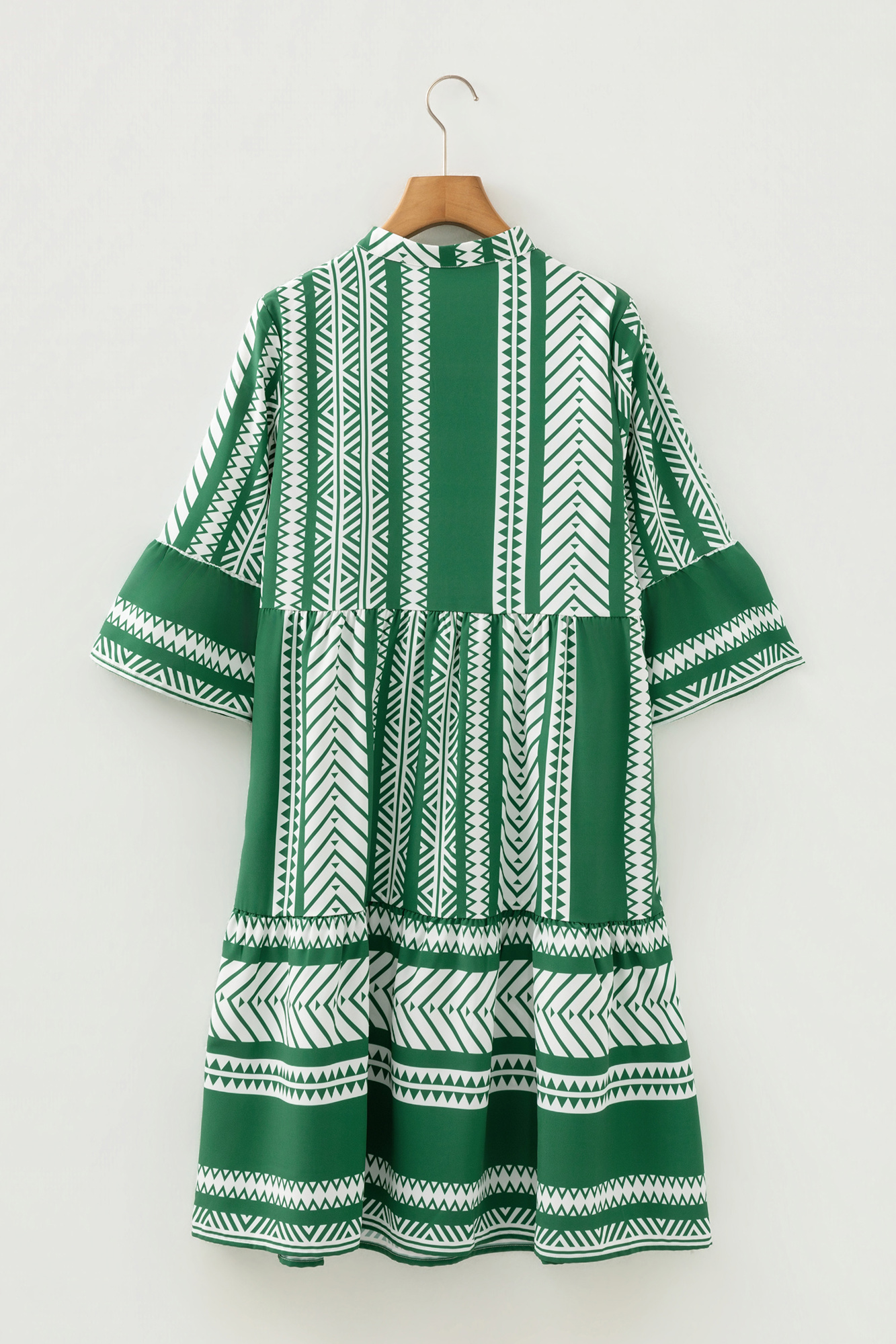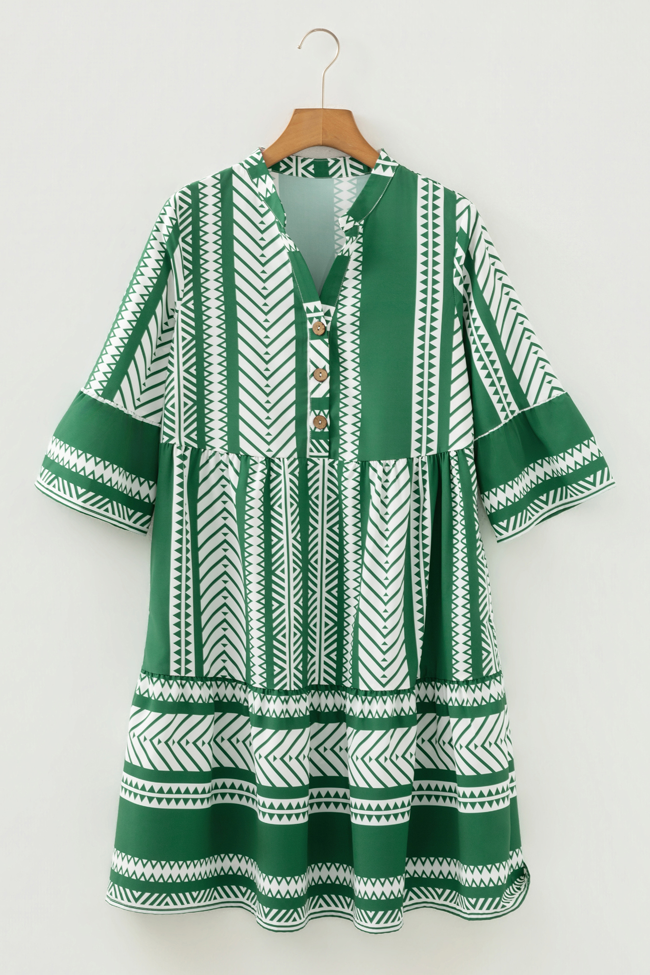 Mikaela 4 Sleeve Casual Dress is your new go-to piece when you want to feel cute and comfortable. Boho dress with ethnic print adds vibrant, free-spirited charm. Half button design offers easy wear and relaxed style. 3/4 sleeve provides light coverage for any season. Soft, breathable fabric makes this casual dress comfy all day. Material: 100%Polyester.