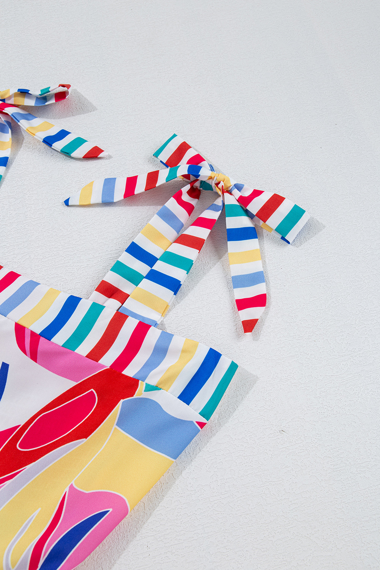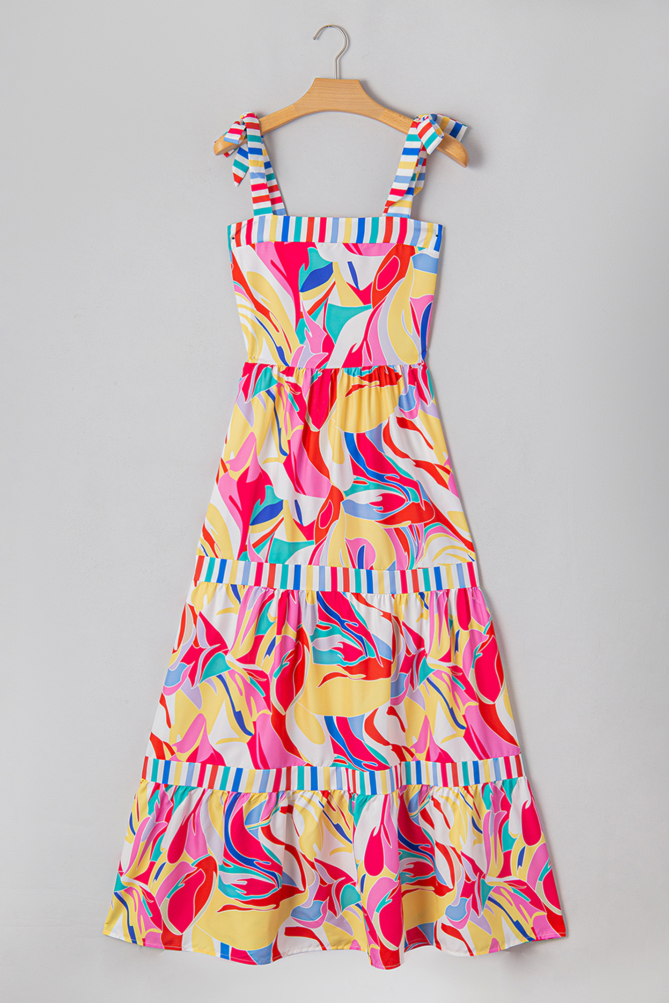 Dress in Milan Striped Trim Maxi Sundress when you want a relaxed fit that still feels polished. Wow the crowds with the Abstract Print Striped Trim Maxi Sundress This dress is super cute so all girls love its fun colors and print Featuring a bright retro print, tie straps, and maxi length Made of a lightweight fabric that makes it swing so elegantly in the breeze Fulfill your fashion wardrobe with the latest trend by maxi dresses Material: 100%Polyester.