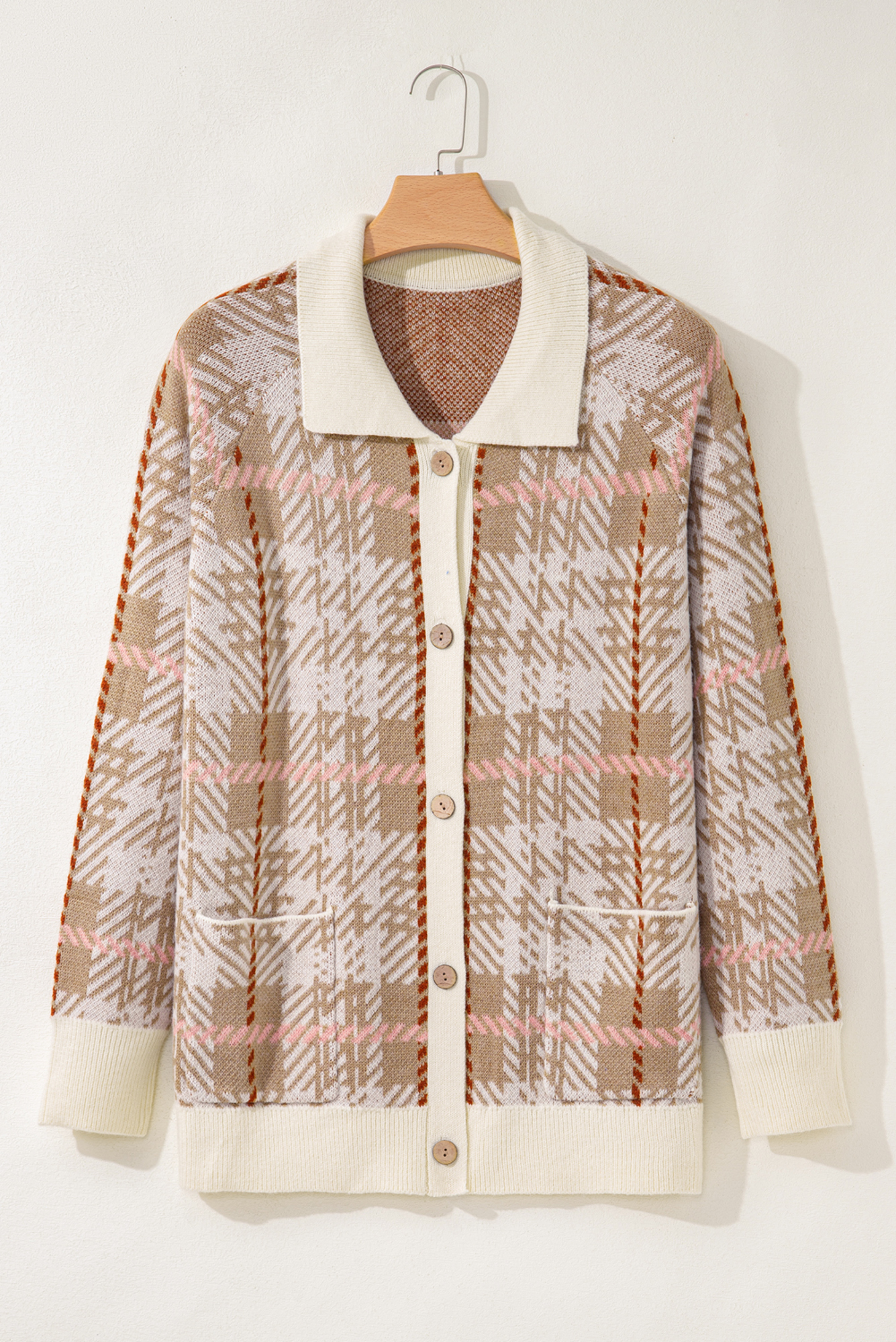 Navy Trim Front Cardigan PLUS Sweater is designed to move with you and keep you comfortable all day long. Classic vintage pattern adds timeless charm to this plus size cardigan sweater. Ribbed trim detailing enhances fit and style for casual wear. Button front closure offers easy layering for fall and winter fashion. Plus size design provides comfortable, flattering fit for all body types. Material: 65%Acrylic+35%Polyamide.